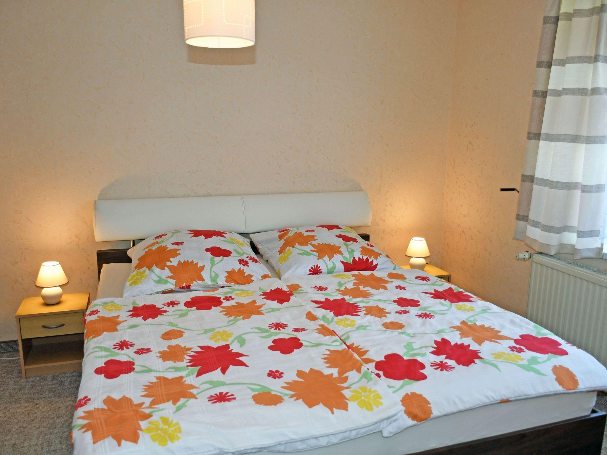 Das große Schlafzimmer ist mit einem bequemen Doppelbett mit Nachttischen und Leselampen sowie einem Kleiderschrank ausgestattet. Für einen 3. und 4. Gast kann bei Bedarf eine Aufbettung auf der Couch im Wohnbereich bereitgestellt werden.
