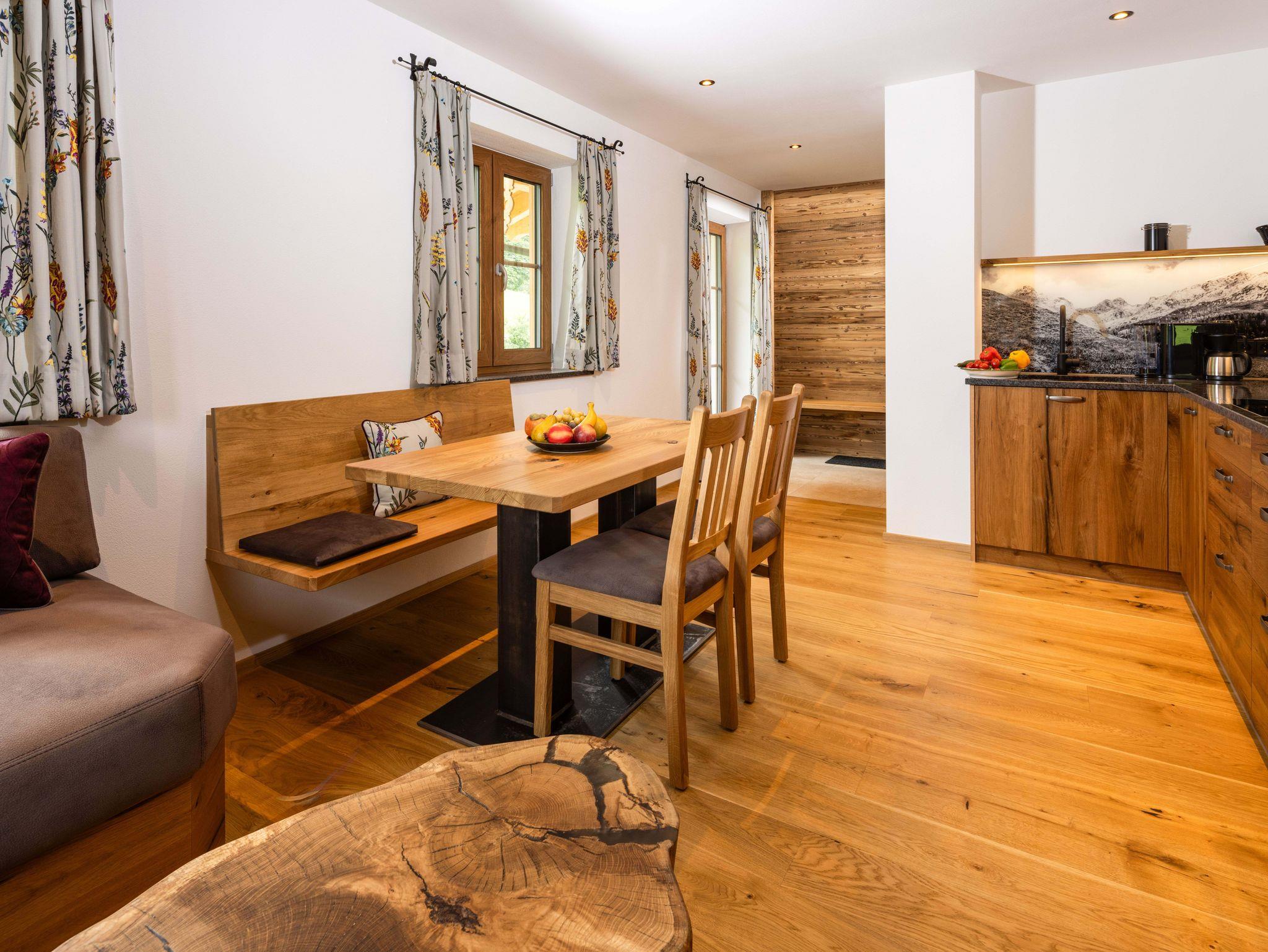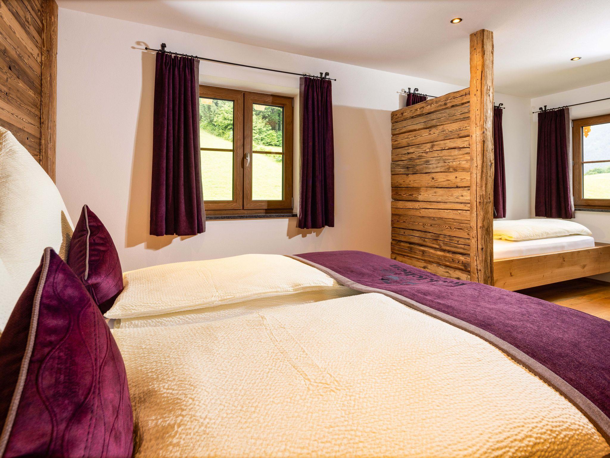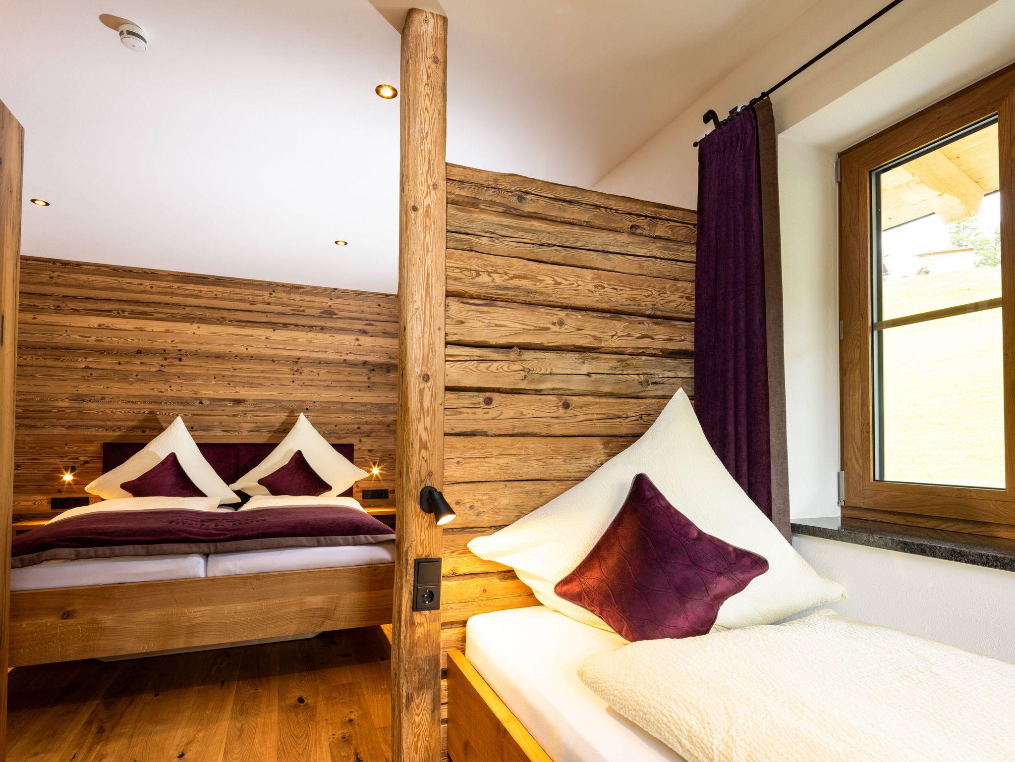 Willkommen in unserer Ferienwohnung Kallbrunnalm, die mit ihrem einzigartigen Mix aus traditionellem Altholz und modernen Elementen eine behagliche Atmosphäre für 2–4 Personen bietet. Ein Schlafzimmer mit handgefertigtem Holzbett, ein lichtdurchfluteter Wohnbereich mit Schlafcouch und eine luxuriöse Regendusche machen diese Wohnung zu einem wahren Wohlfühlort.