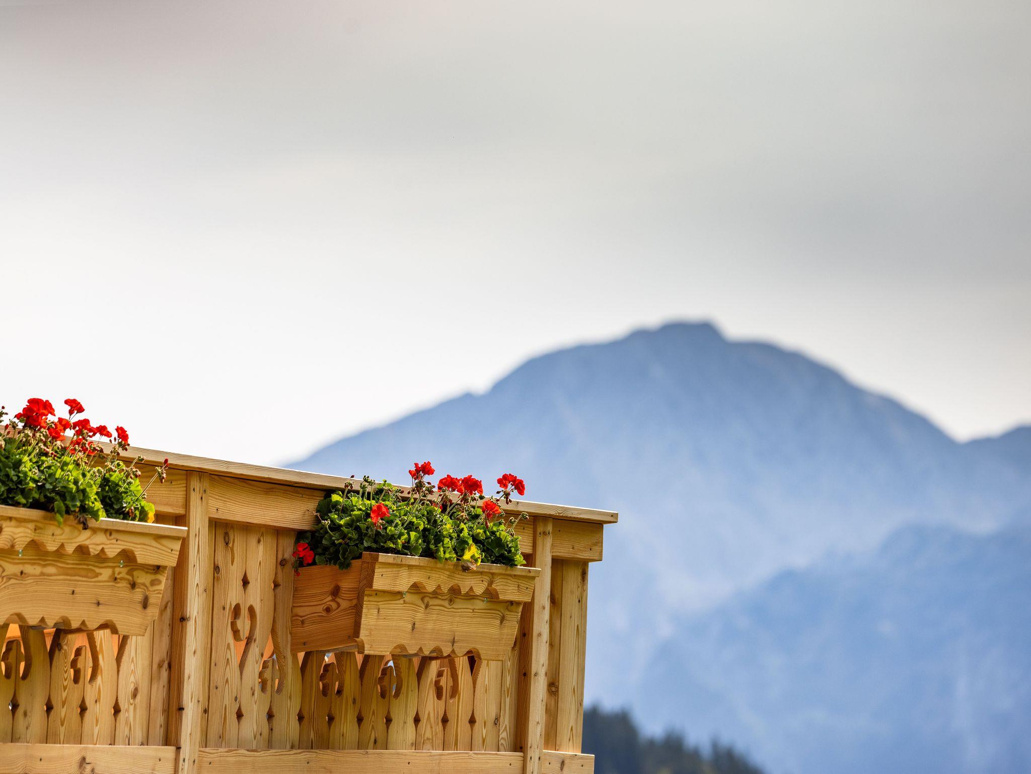 Besonders hervorzuheben ist der charmante Balkon, der einen traumhaften Ausblick auf die Alpenlandschaft bietet. Genießen Sie hier ein Frühstück im Sonnenschein oder lassen Sie den Tag bei einem Glas Wein ausklingen.