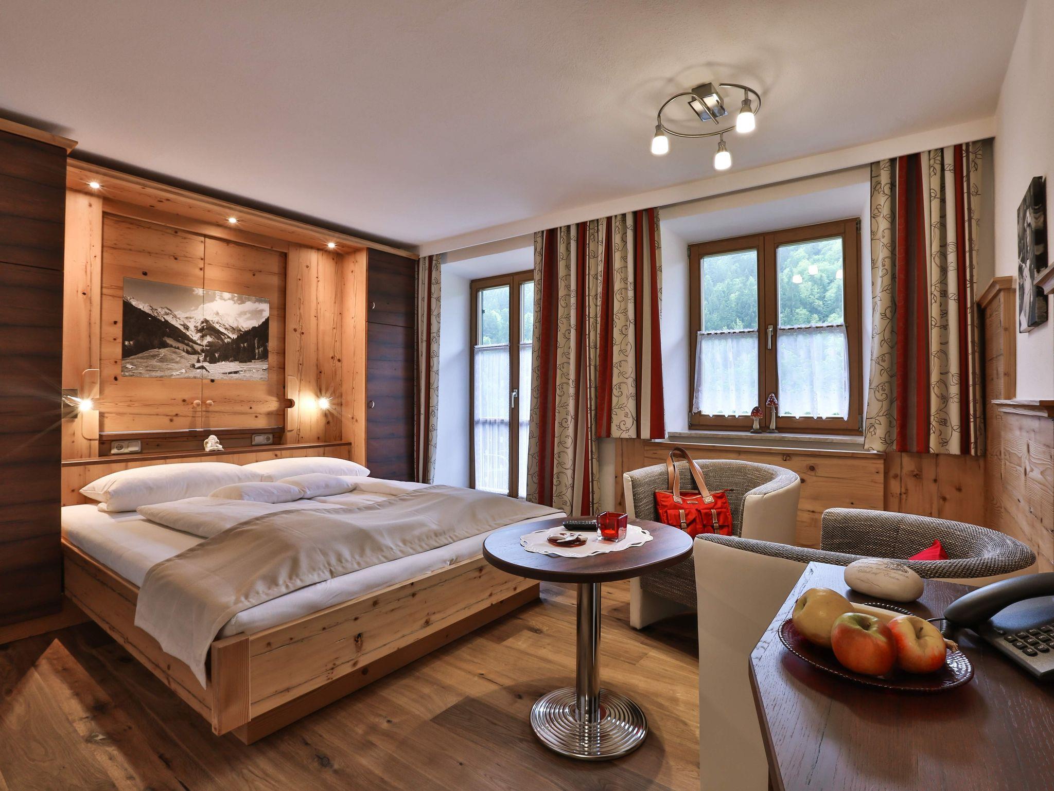 Stilvolles alpines Wohnen in warmen Farben.Unsere neue Ferienwohnung Grünstein ist mit heimischen Kirschholz ausgestattet, geölter Holzboden. Kleine Wohn-Küche mit Spülmaschine, Kühlschrank u. Microwelle, 2-Platten-Cerankochfeld, große gemütliche Sitzcouch, Eßtisch mit Sitzgelegenheit, Flachbildschirm mit SAT-TV, Garderobe mit Ganz-Körperspiegel. Das separate Schlafzimmer ist aus Fichte-Altholzmöbel und Eiche-Echtholz-Fußboden eingerichted und hat Verdunkelungsvorhänge, Zimmersafe, und TV. Die Wohnung Grünstein hat beim Schlafzimmer einen Südbalkon mit Blick auf den Steinberg und vom Wohnbereich einen Ostbalkon mit Blick auf den Hoher Göll und Watzmann. Das Badezimmer ist ausgestattet mit hochwertigen Materialien, verfügt über einen Granit-Waschtisch mit viel Ablagefläche, einen großen Duschbereich, WC, Fön, Kosmetikspiegelund Handtuchtrockner.