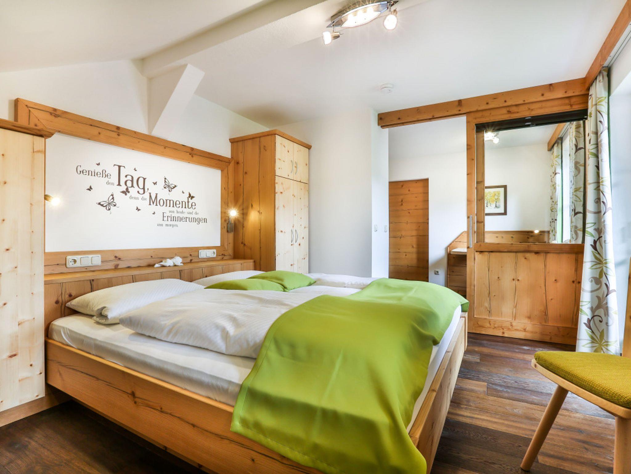 Unsere neue Ferienwohnung, gefertigt in unserer Schreinerei, zeichnen sich aus durch eineKombination aus persönlicher Note, Liebe zum Detail und dem ländlich-kreativem Design,die Ihrem Urlaub das gewisse Etwas geben.Wir können Ihnen exklusive und gemütliche Zwei-Zimmer-Suiten in gehobenem Stil anbieten.Stilvolle alpine Wohlfühlwohnung in Fichte-Altholz, kombiniert mit Zirbe und Echtholz-Eiche-Fußboden.Küche mit Spülmaschine, Kühlschrank, Microwelle, 2-Platten-Cerankochfeld, Kaffeemaschine und Wasserkocher.Gemütlicher Wohnbereich mit Sitzcouch und Tisch - Flachbildschirm mit SAT-TV, Telefon und Leselampe.Außerdem haben Sie eine kleine urige Sitzecke mit Esstisch. Das Schlafzimmer hat Betten in der Größe 180x200cm,mit SAT-TV, Kofferablage und Zimmersafe. Der Wohn- und Schlafbereich ist durch ein Glas-Schiebetürelement mitVerdunkelungsjalousie abgetrennt.Das Badezimmer ist ausgestattet mit hochwertigen Materialien, verfügt über einen Granit-Waschtisch mit viel Ablagefläche,einen großen Duschbereich, WC, Fön, Kosmetikspiegel und Handtuchtrockner sowie Kosmetikprodukte.Durch ein Glaselement zum Wohnzimmer haben Sie auch im Bad natürliches Tageslicht.Sie wohnen im 3. Stock und haben einen eigenen Süd- und Westbalkon mit einemPanoramablick auf den Steinberg und die Reiteralpe.