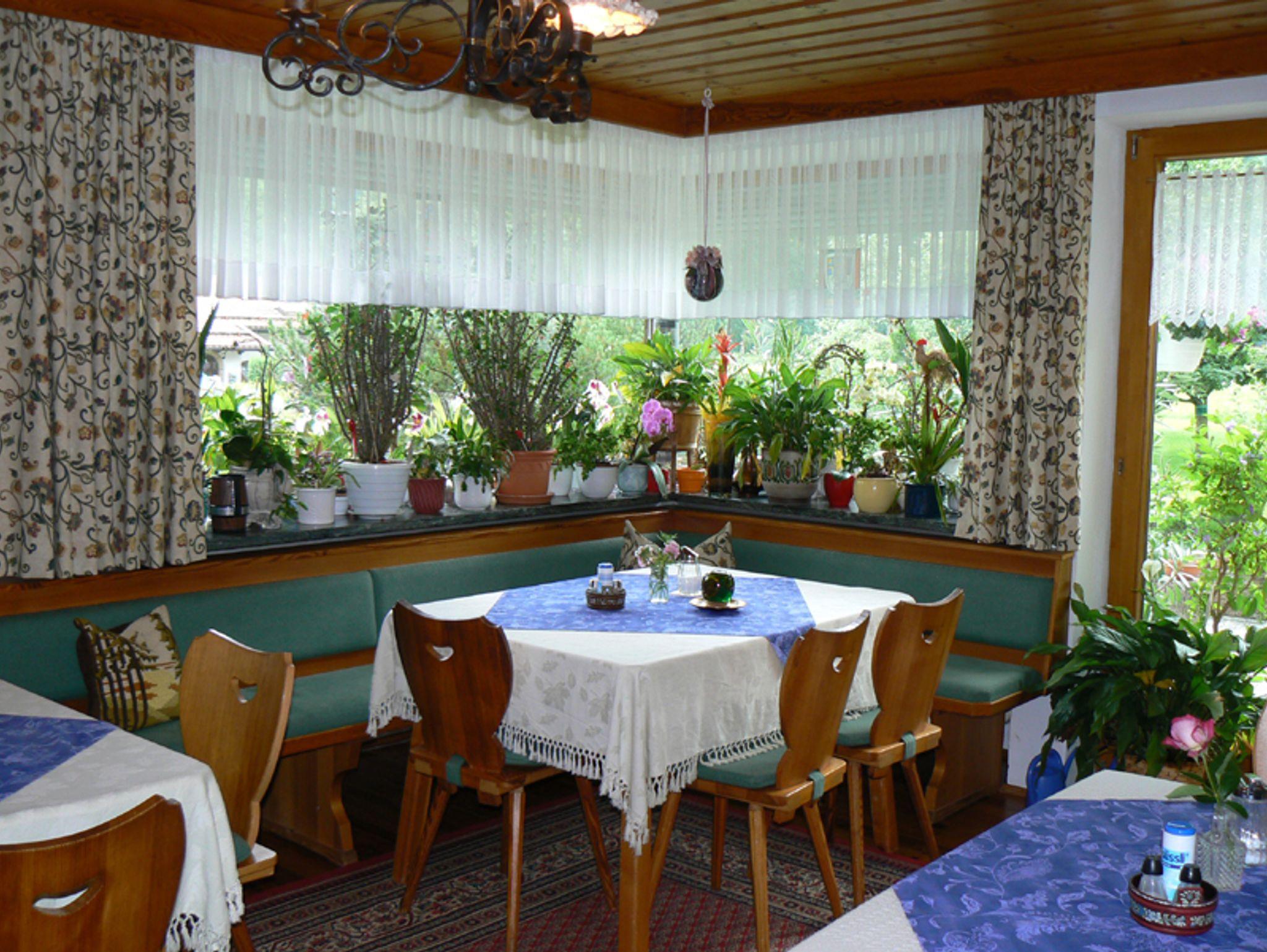 Lassen Sie jeden Tag im Frühstücksraum bei einem Großen leckeren Frühstück gut beginnen, genießen Sie dabei den herrlichen Blick auf Watzmann und Kehlstein.