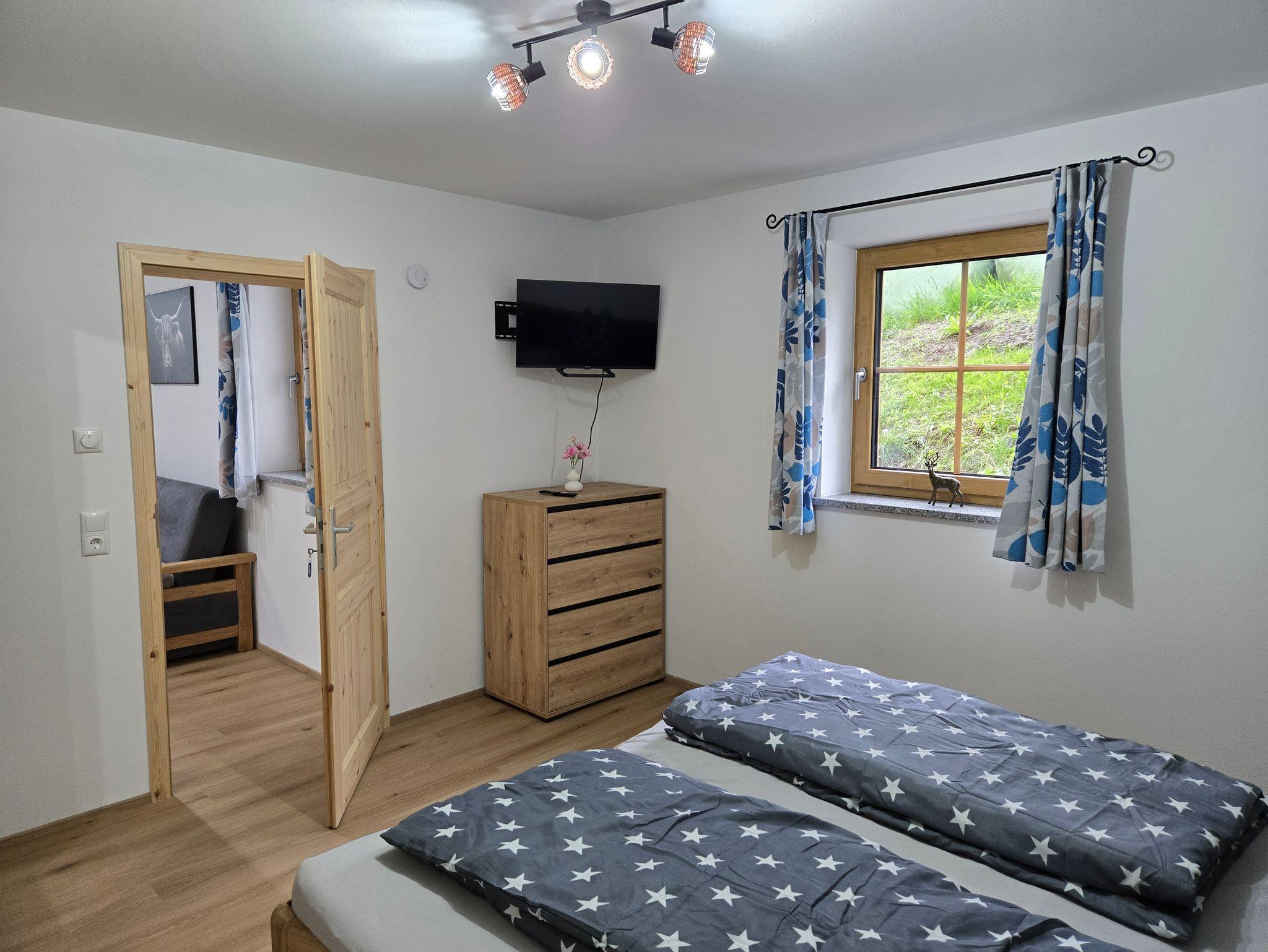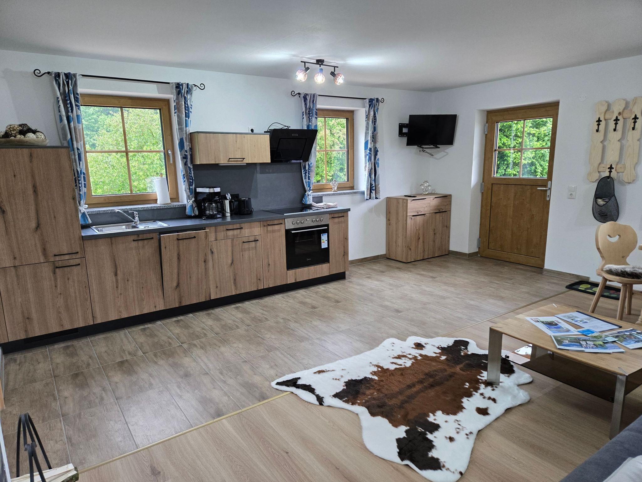 Die 50 m² große und gemütliche Wohnung bietet viel Platz für Erholung. Auf der liebevoll gestalteten Terrasse können Sie die Sonne und die Gesellschaft unserer Rinder und Ziegen beim grasen im Sommer genießen. Der Küchenbereich ist voll ausgestattet, ihnen steht neben der Spülmaschine auch eine Kaffeemaschine, ein Wasserkocher, ein Toaster und ein Eierkocher zur Verfügung. Es ist ausreichend Koch- und Essgeschirr vorhanden und auch für die Sauberkeit danach ist mit Spülmittel, Schwamm- und Geschirrtüchern gesorgt. Ihnen stehen zwei Internetfähige TV Geräte zur Verfügung, eines im Schlafzimmer und eines im Wohn- Essbereich. In dem geräumigen Wohnbereich finden Sie auch ein gemütliches Sofa, das man bei Bedarf zu einem Schlafsofa ausziehen kann. Je nach Lust und Laune finden Sie drinnen und draußen einen geeigneten Essbereich. Haustiere, ob Hund oder Katze, sind bei uns auch herzlich willkommen und grundsätzlich kostenfrei. Natürlich steht Ihnen kostenloses W-LAN zur Verfügung.