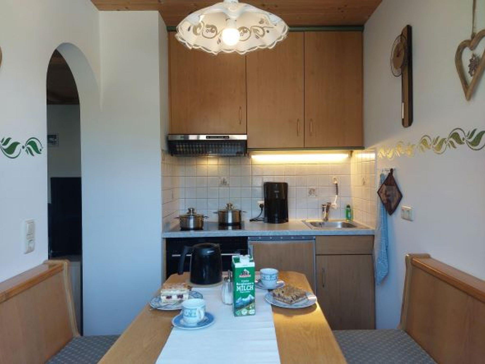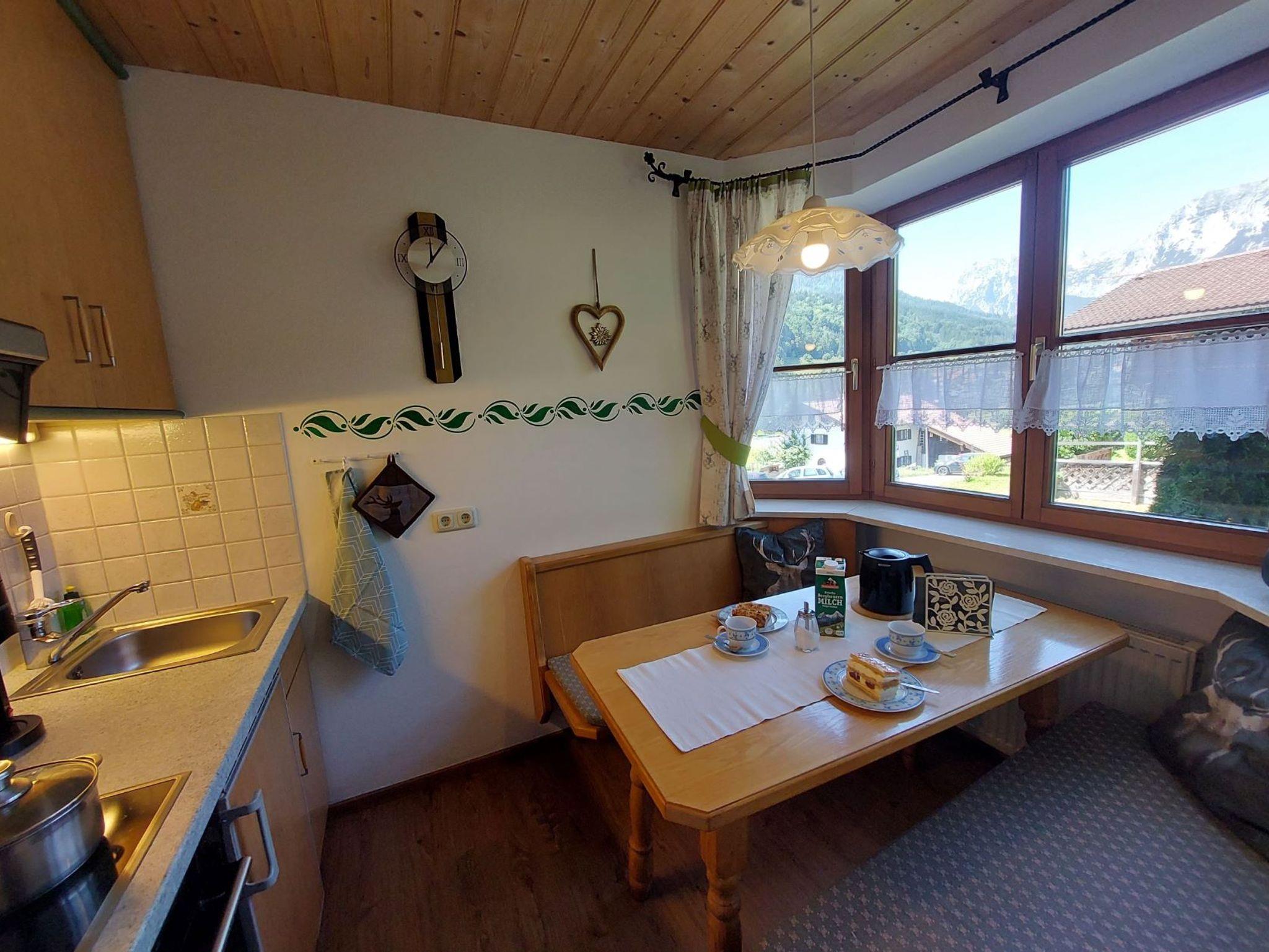 Die 42 m² große Ferienwohnung liegt im Erdgeschoss, verfügt über eine große Terrasse mit Gartenbestuhlung und Blick auf die Reiteralpe und die Ramsauer Kirche. Die Wohnung ist bestens ausgestattet mit Parkettböden, Holzdecken, Mikrowelle, Backofen, 4-Plattenherd, Mikrowelle, Kaffeemaschine, Toaster, Eierkocher, Wasserkocher, Sat-TV, kostenlosem WLAN, Stereoanlage, Sitzgruppe im Wohnzimmer, Schlafgelegenheit, Spielesammlung, Bücher und Radiowecker. Garage am Haus. Es steht eine Münzwaschmaschine und ein Münztrockner zur Verfügung.