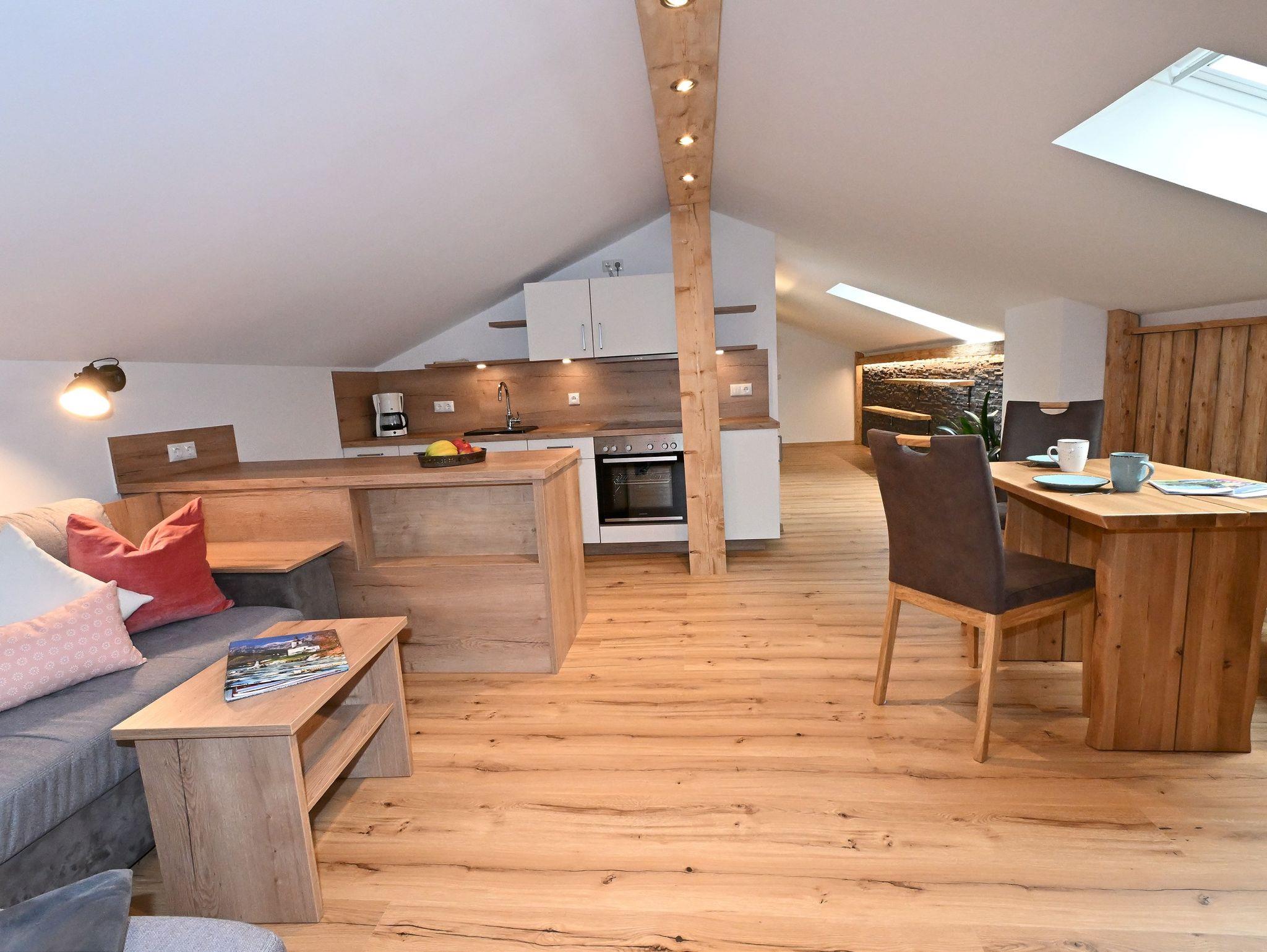 Sehr gemütliche FeWo im Dachgeschoss komplett renoviert im Frühjahr 2022 mit massivem Altholz ausgestattet. W- LAN incl. Wischbarer Boden in der ganzen Wohnung. Jeder Raum mit Dachfenster und Rollläden versehen. Südbalkon mit herrlichem Blick auf Watzmann, Steinberg und Reiteralpe- gemütliche Sitzecke. FeWo ausgestattet mit großem Fernseher, Spülmaschine, 4 Plattenherd, Backofen, Kühlschrank mit Gefrierfach, etc.
