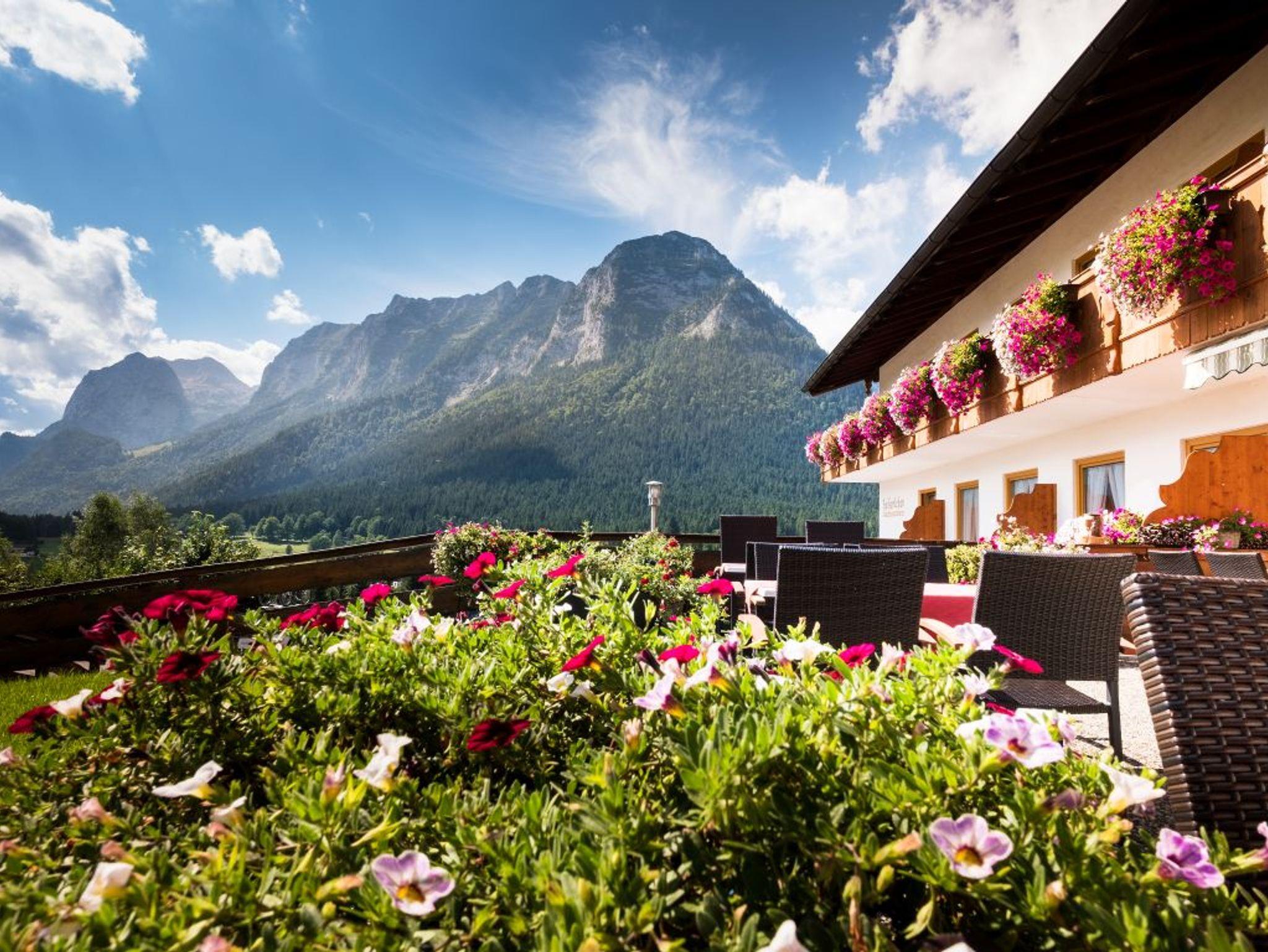 Auf 900m oberhalb des Ramsauer Tales am Fuße des Watzmanns mit einem sagenhaften und sonnigen Blick über die ganze Bergwelt bieten wir Ihnen Wohlig schlafen - Ausgiebig frühstücken - Genussvoll aktiv sein. Unsere im erfrischendem Design eingerichteten Nichtraucher- Komfortzimmer mit einem sonnigen und majestätischen Blick auf Watzmann, Hochkalter und Reiteralpe, bieten einen zeitgemäßen Standard Mit viel Liebe zum Detail, Herz und Leidenschaft begrüßen wir Hobby-Alpinisten, Wiederholungstäter und diejenigen die wir noch begeistern dürfen. Das Frühstück ist unsere großen Leidenschaft und wird jeden Tag individuell mit regionalen Produkten aus der Region mit viel Liebe zubereitet. Sie können dies auf unserer sonnigen Panoramaterrasse oder in unserem urigen Frühstücksraum genießen. Als besonderen Service für unsere Gäste steht ihnen unser Rastplatz mit kostenloser Tee/Kaffeebar, Gästekühlschränken, Bibliothek, Getränkeangebot zur Verfügung. WLAN im Haus kostenlos. Bestpreisgarantie bei Direktbuchung über Homepage oder per Email unter , es lohnt sich!! Oder einfach anrufen und sofort buchen. Wir freuen uns auf Sie!