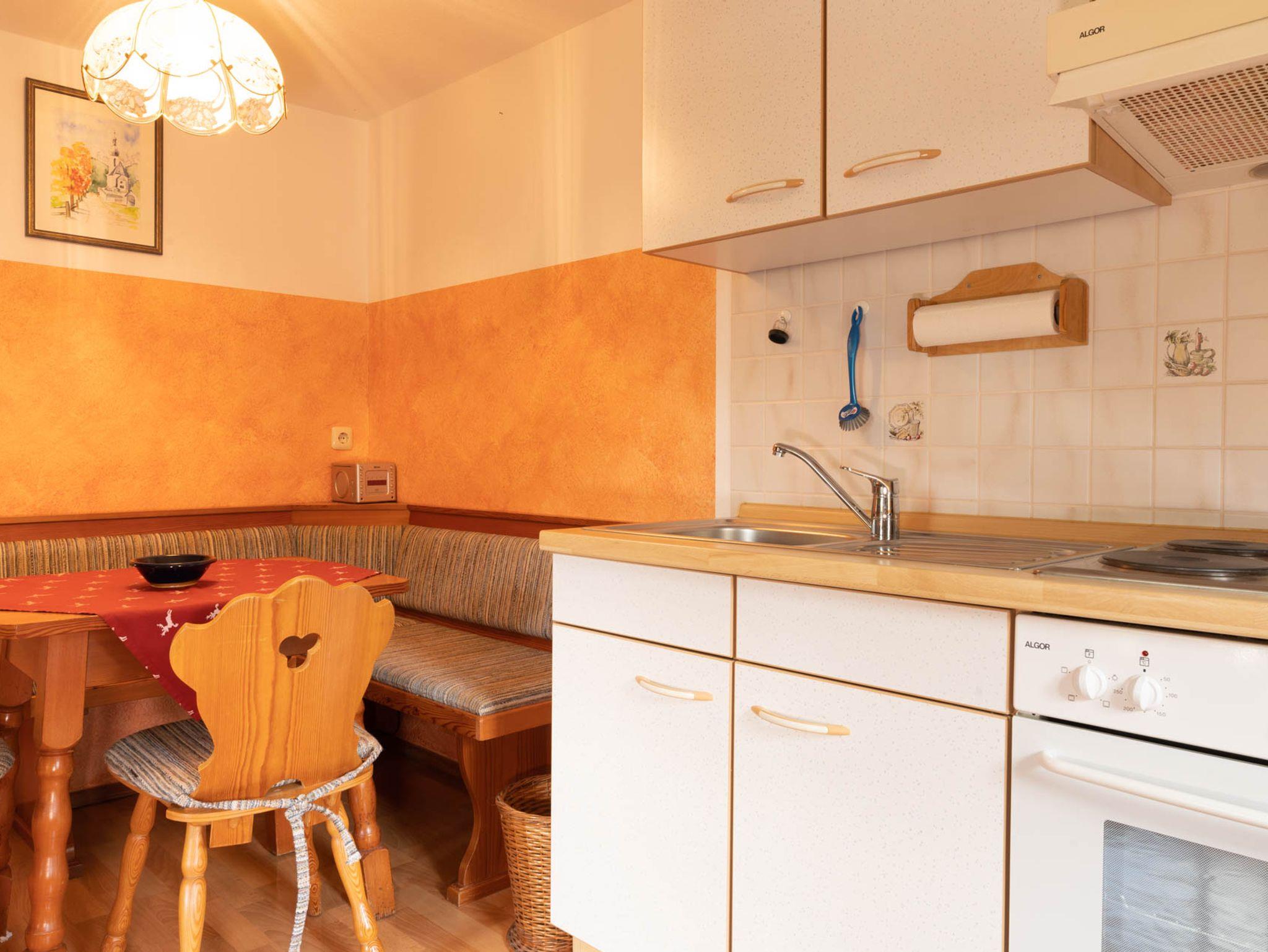 • vollausgestattete Küche mit rustikaler Eckbank