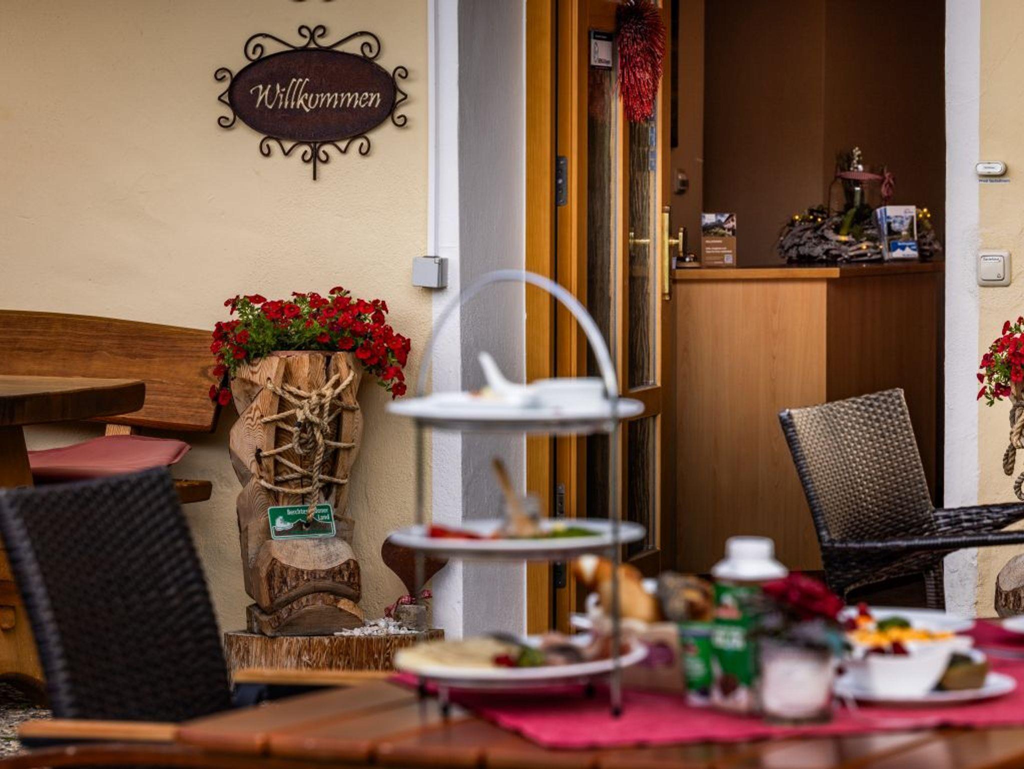 Auf 900m oberhalb des Ramsauer Tales am Fuße des Watzmanns mit einem sagenhaften und sonnigen Blick über die ganze Bergwelt bieten wir Ihnen Wohlig schlafen - Ausgiebig frühstücken - Genussvoll aktiv sein. Unsere im erfrischendem Design eingerichteten Nichtraucher- Komfortzimmer mit einem sonnigen und majestätischen Blick auf Watzmann, Hochkalter und Reiteralpe, bieten einen zeitgemäßen Standard Mit viel Liebe zum Detail, Herz und Leidenschaft begrüßen wir Hobby-Alpinisten, Wiederholungstäter und diejenigen die wir noch begeistern dürfen. Das Frühstück ist unsere großen Leidenschaft und wird jeden Tag individuell mit regionalen Produkten aus der Region mit viel Liebe zubereitet. Sie können dies auf unserer sonnigen Panoramaterrasse oder in unserem urigen Frühstücksraum genießen. Als besonderen Service für unsere Gäste steht ihnen unser Rastplatz mit kostenloser Tee/Kaffeebar, Gästekühlschränken, Bibliothek, Getränkeangebot zur Verfügung. WLAN im Haus kostenlos. Bestpreisgarantie bei Direktbuchung über Homepage oder per Email unter , es lohnt sich!! Oder einfach anrufen und sofort buchen. Wir freuen uns auf Sie!