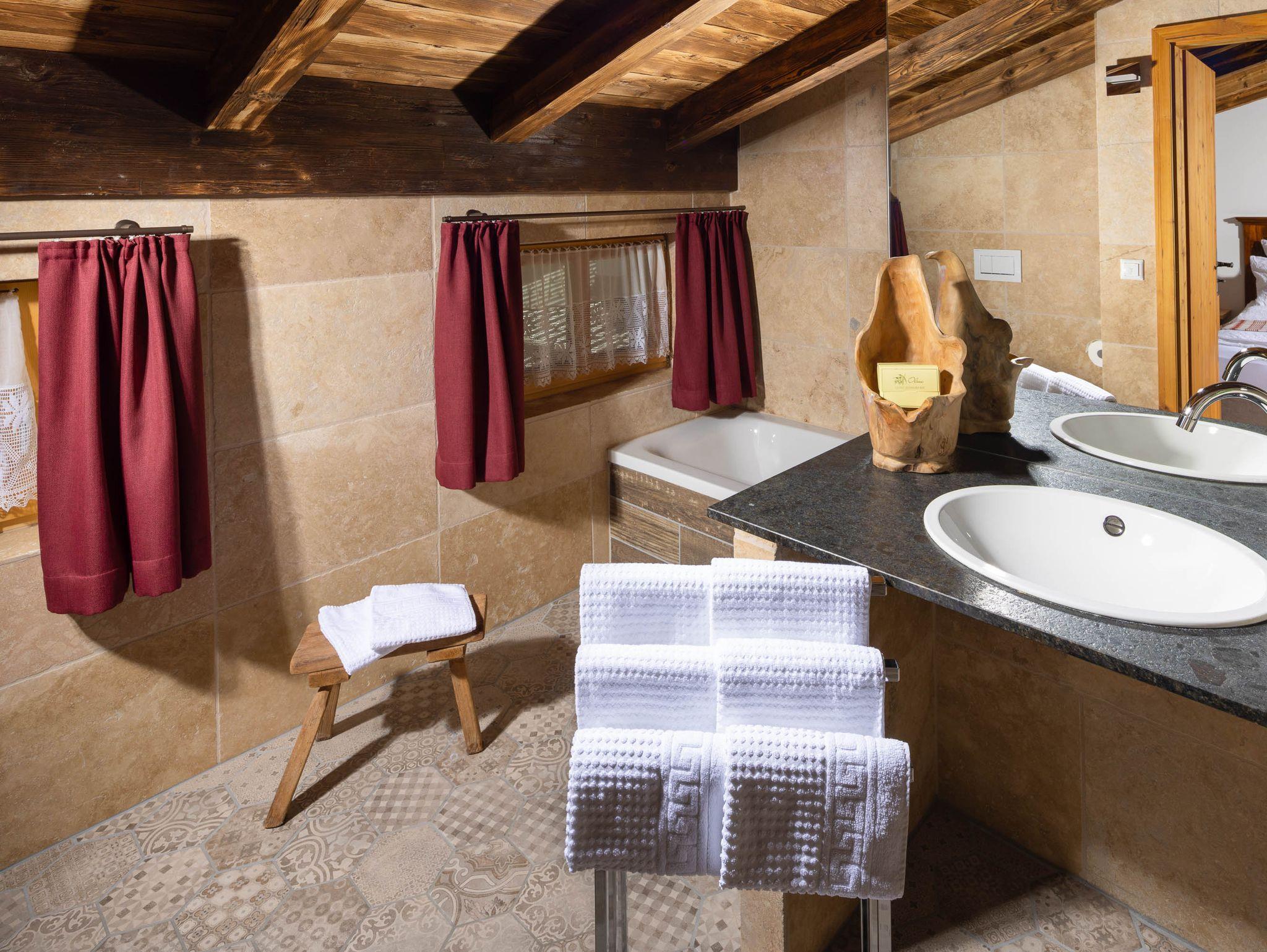 Entspannen Sie sich und genießen Sie sie alpenländische Gemütlichkeit und das Ambiente. Hierzu stehen Ihnen 80 qm Wohnfläche und ein privater Panorama-Balkon zur Verfügung. Zwei getrennte Schlafzimmer mit Boxspringbetten, jeweils separatem Badezimmer mit Aussichts- bzw. Sternenblick-Badewanne und separatem bodenbündiger Dusche bieten Ihnen viel Privatheit, auch wenn Sie mit Freunden und Familie reisen. Eine vollwertig ausgestattete Einbauküche und ein großzügiger Wohnbereich mit Sofalandschaft lassen keine Wünsche offen. Natürliche Materialien wie Mond-geschlagenes, gehacktes Holz und Naturstein sorgen für maximale Wohlfühlmomente in Ihrem Urlaub. So interpretieren wir den alpinen Stil. Selbstverständlich stehen Ihnen auch unsere gestalteten Freianlagen zur Verfügung, am Tag für ein Sonnenbad oder am Abend für ein entspanntes Gläschen Wein. Für den wahren Alpenstyle fehlt Ihnen der Bauernhof? Kein Problem! Etwas abseits befindet sich unser neuer, im alpenländischen Stil errichteter Freilauf-Stall. Der fünf vom aussterben bedrohten Zwergrindern Herberge bietet. Bei Belegung mit zwei Personen steht Ihnen ein Schlafzimmer zur Verfügung, das zweite Schlafzimmer kann gegen Aufpreis mitbenutzt werden. Beistellbett auf Anfrage bei Vermieter möglich.