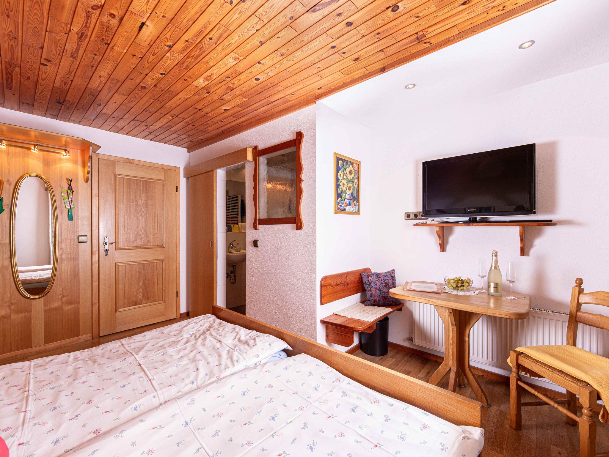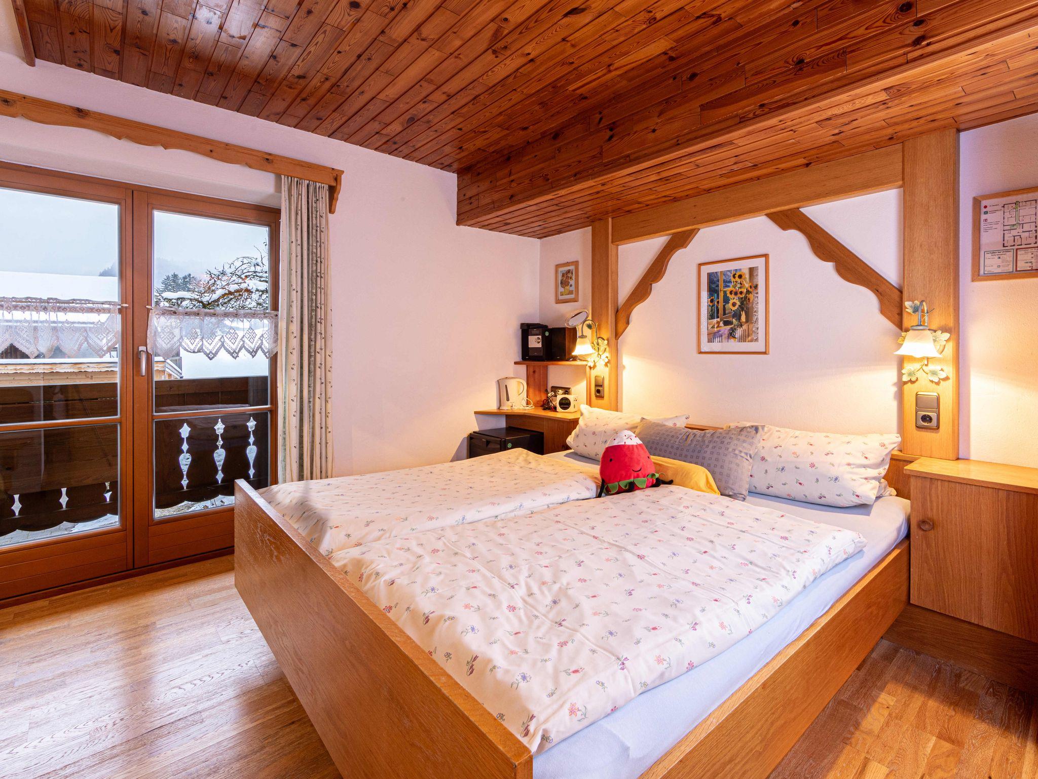 In unserem Haus gibt es vier gemütliche und komfortable Doppelzimmer mit einem wunderbaren Frühstücksbuffet. Alle Zimmer verfügen über Dusche/WC, Fön, Betten (Länge 2m), Radiowecker, großen Flat-TV, Safe, Kühlschrank, zum Teil Mini-Stereoanlage. Alle Zimmer haben einen Balkon mit Blick auf die Berge. Das gemütliche Doppelzimmer 12, zum Westen gelegen, ist mit einem Doppelbett (Bettengröße 2,00 x 1,90 m), Sitzecke und Holzfußboden ausgestattet.