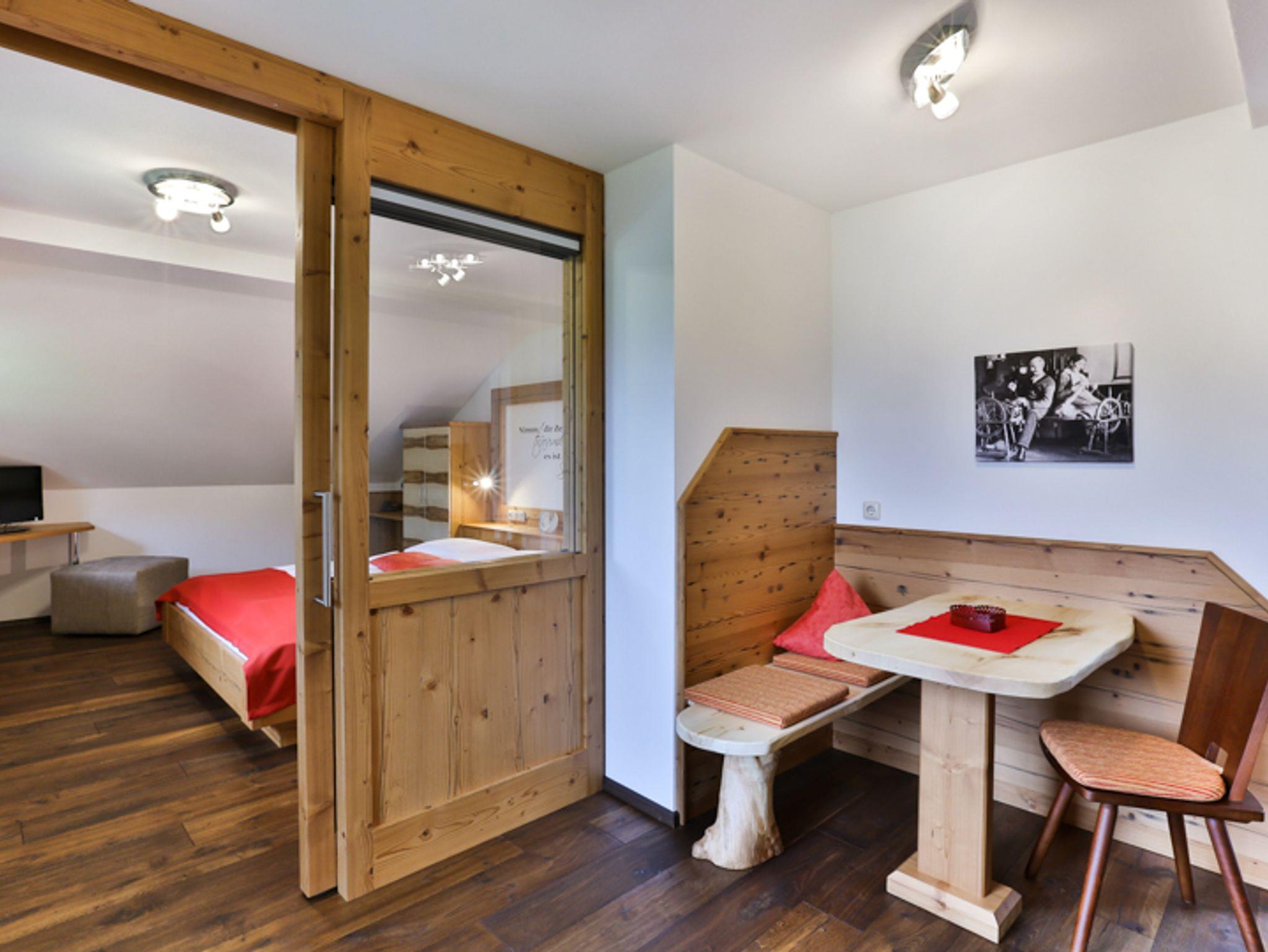 Stilvolle alpine Wohlfühlwohnung in Fichte-Altholz, kombiniert mit Bergahorn und Echtholz-Eiche-Fußboden. Küche mit Spülmaschine, Kühlschrank, Microwelle, 2-Platten-Cerankochfeld, Kaffeemaschine und Wasserkocher. Gemütlicher Wohnbereich mit Sitzcouch und Tisch - Flachbildschirm mit SAT-TV, Telefon und Leselampe. Außerdem haben Sie eine kleine urige Sitzecke mit Esstisch. Das Schlafzimmer hat Betten in der Größe 180x200cm, mit SAT-TV, Kofferablage und Zimmersafe. Der Wohn- und Schlafbereich ist durch ein Glas-Schiebetürelement mit Verdunkelungsjalousie abgetrennt. Das Badezimmer ist ausgestattet mit hochwertigen Materialien, verfügt über einen Granit-Waschtisch mit viel Ablagefläche, einen großen Duschbereich, WC, Fön, Kosmetikspiegel und Handtuchtrockner sowie Kosmetikprodukte. Sie wohnen im 3. Stock und haben einen eigenen Ostbalkon mit einem Panoramablick auf den Hohen Göll und den Watzmann.