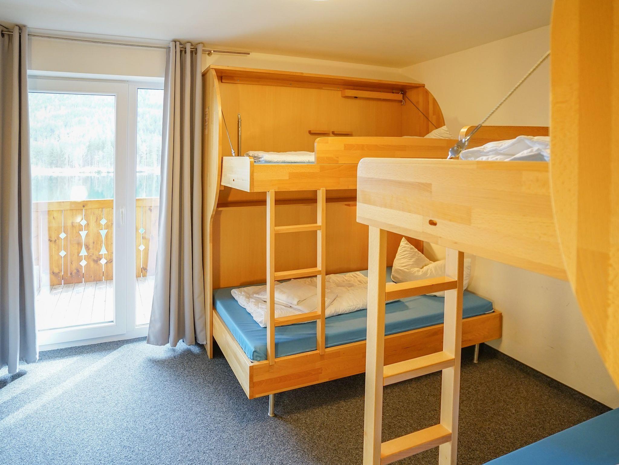 Gemütlich und modern eingerichtetes Mehrbettzimmer mit Doppelstockbetten und einem traumhaften Blick auf den Hintersee und das Hochkaltermassiv ühstücksbuffet, Handtüchern und Bettwäsche. Bei einem Aufenthalt von mindestens 3 Nächten ist zudem Ihr Bett bei Anreise bereits bezogen. Ab einem Aufenthalt von mindestens 7 Nächten ist zudem eine Zimmerreinigung und ein Handtuchwechsel inklusive.