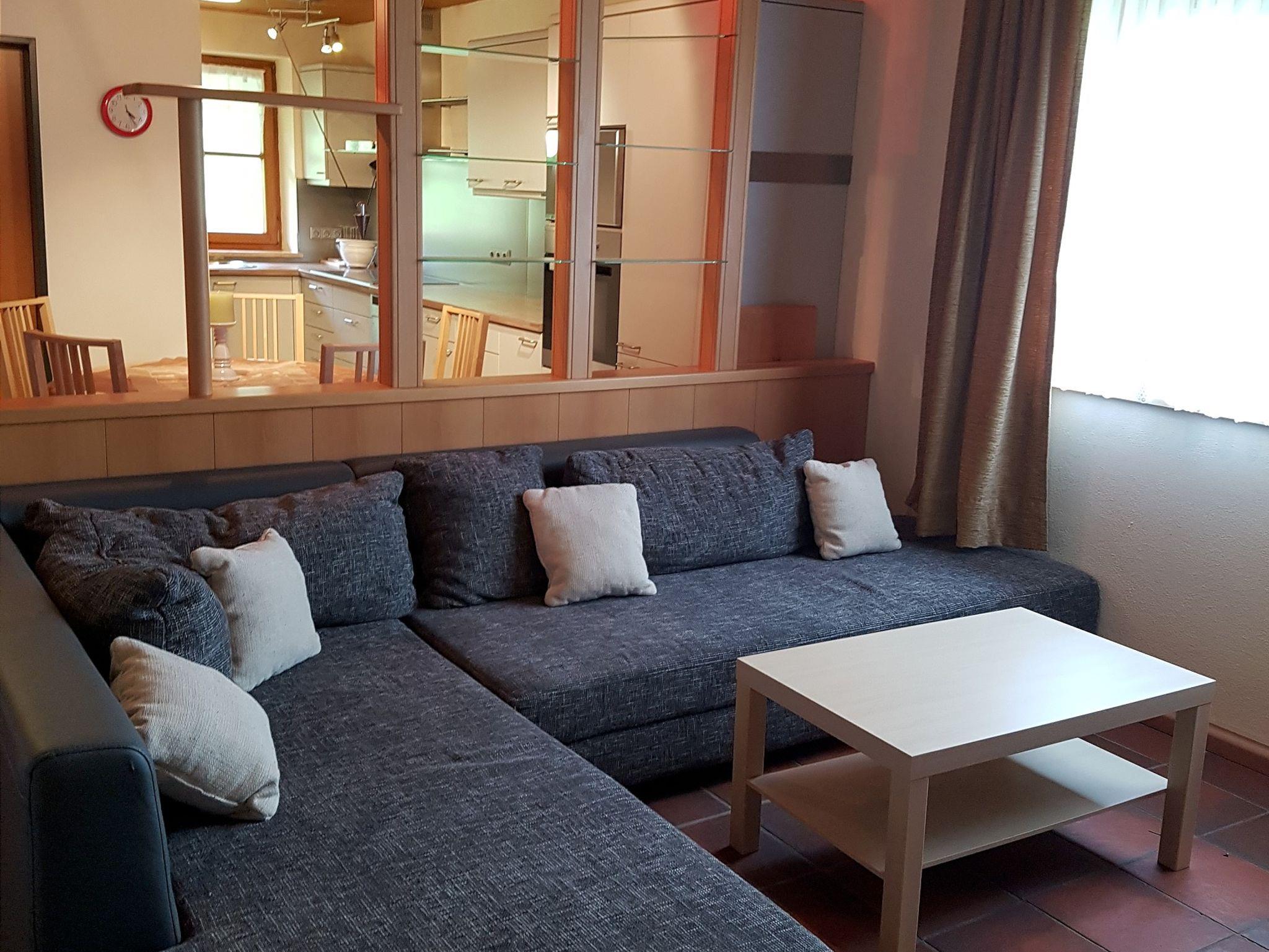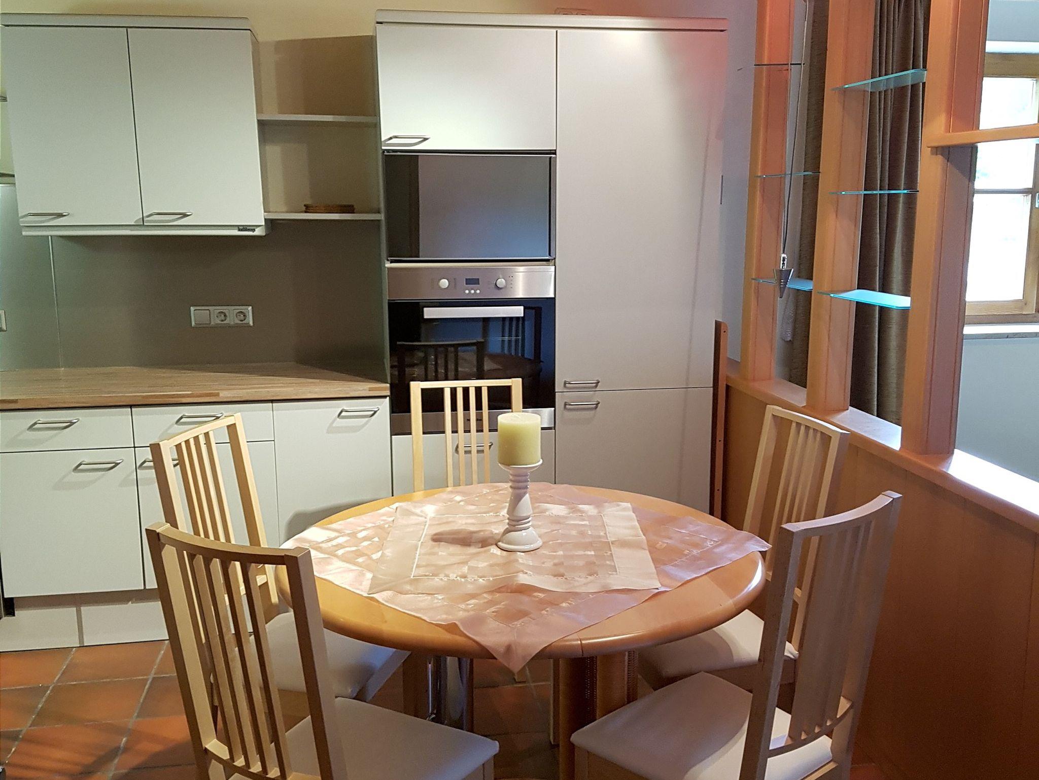 Ausstattung:Wohnzimmer mit Couch (ausziehbar zur Schlafcouch = 1,80 x 2 Meter), TV, Küche mit großem Esstisch, Kühlschrank - Gefrierkombination, Induktionskochfeld, Backofen, Spülmaschine, Wasserkocher, Kaffeemaschine, Mikrowelle, Besteck, Geschirr, Geschirrtücher Schlafzimmer mit Doppelbett (1,80m x 2,00m), Kleiderschrank, abdunkelnde Vorhänge, Bettwäsche vorhanden, Bad mit Dusche, WC, Handtücher, Fön, Balkon. Kostenloses WLAN, kostenfreier Parkplatz am Haus. Maximalbelegung 4 Personen, Nichtraucherwohnung, Hunde erlaubt, viele Wandermöglichkeiten direkt ab Haus/Bushaltestelle: 50 m entfernt