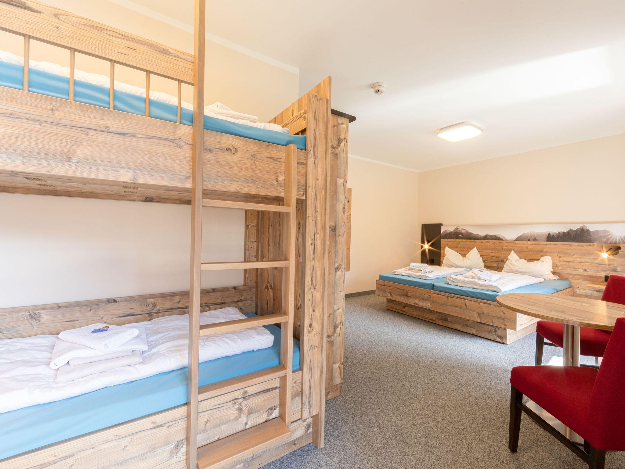Gemütlich eingerichtetes Familienzimmer mit einem traumhaften Blick auf den Hintersee und das Hochkaltermassiv inkl. Frühstücksbuffet, Bettwäsche und Handtücher. Ab einem Mindestaufenthalt von 3 Nächten sind Ihre Betten bei Anreise bereits bezogen. Ab einem Aufenthalt von 7 Nächten ist zudem eine Zimmerreinigung und ein Handtuchwechsel inklusive. Die Belegung mit einer fünften Person im Beistellbett ist auf Nachfrage eventuell möglich.