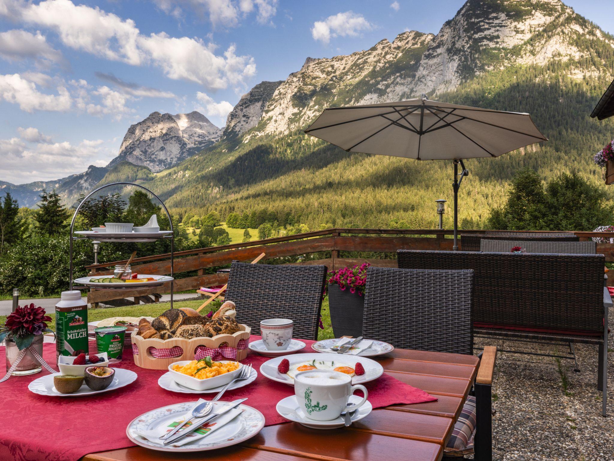 Auf 900m oberhalb des Ramsauer Tales am Fuße des Watzmanns mit einem sagenhaften und sonnigen Blick über die ganze Bergwelt bieten wir Ihnen Wohlig schlafen - Ausgiebig frühstücken - Genussvoll aktiv sein. Unsere im erfrischendem Design eingerichteten Nichtraucher- Komfortzimmer mit einem sonnigen und majestätischen Blick auf Watzmann, Hochkalter und Reiteralpe, bieten einen zeitgemäßen Standard Mit viel Liebe zum Detail, Herz und Leidenschaft begrüßen wir Hobby-Alpinisten, Wiederholungstäter und diejenigen die wir noch begeistern dürfen. Das Frühstück ist unsere großen Leidenschaft und wird jeden Tag individuell mit regionalen Produkten aus der Region mit viel Liebe zubereitet. Sie können dies auf unserer sonnigen Panoramaterrasse oder in unserem urigen Frühstücksraum genießen. Als besonderen Service für unsere Gäste steht ihnen unser Rastplatz mit kostenloser Tee/Kaffeebar, Gästekühlschränken, Bibliothek, Getränkeangebot zur Verfügung. WLAN im Haus kostenlos. Bestpreisgarantie bei Direktbuchung über Homepage oder per Email unter , es lohnt sich!! Oder einfach anrufen und sofort buchen. Wir freuen uns auf Sie!