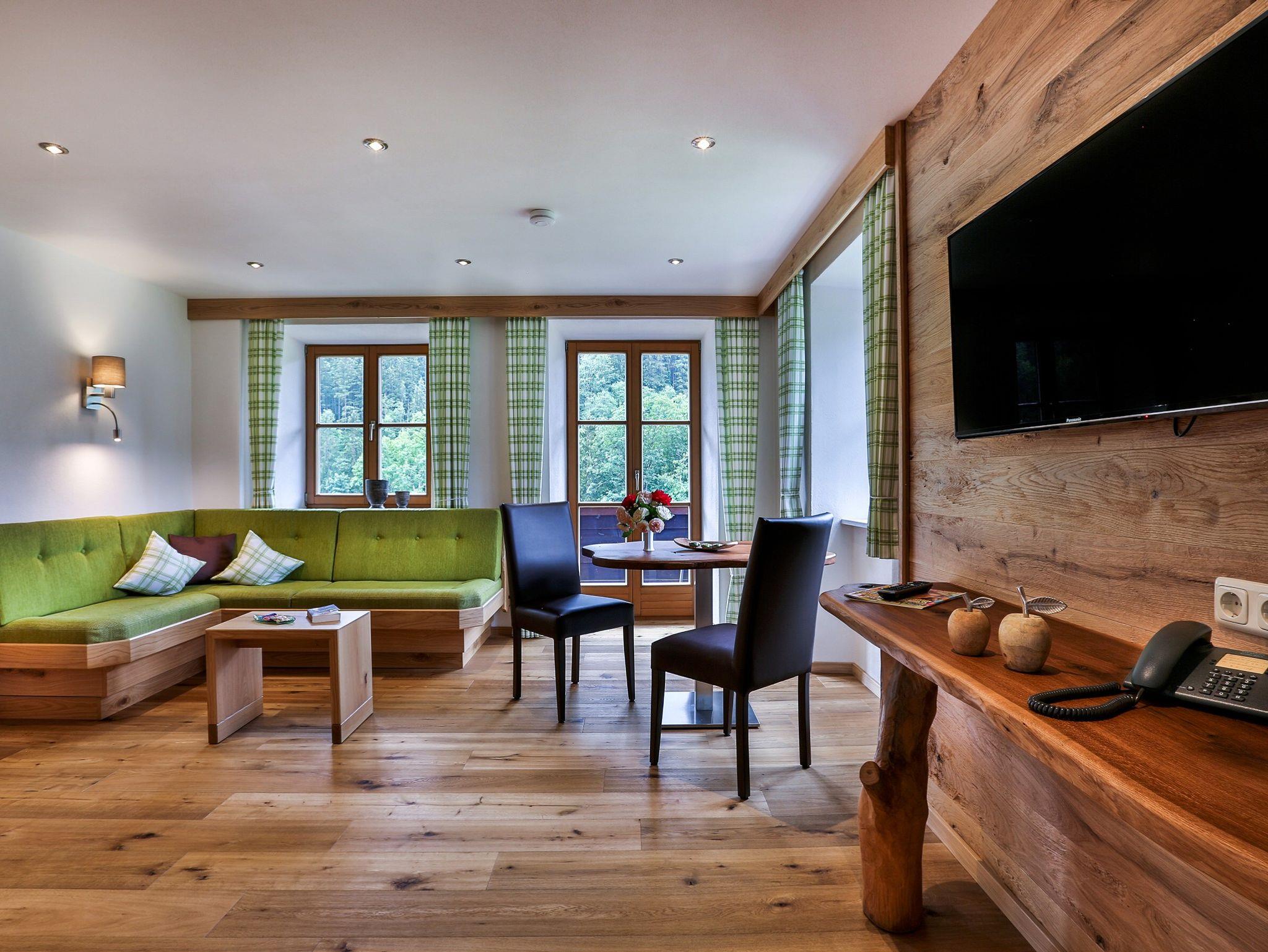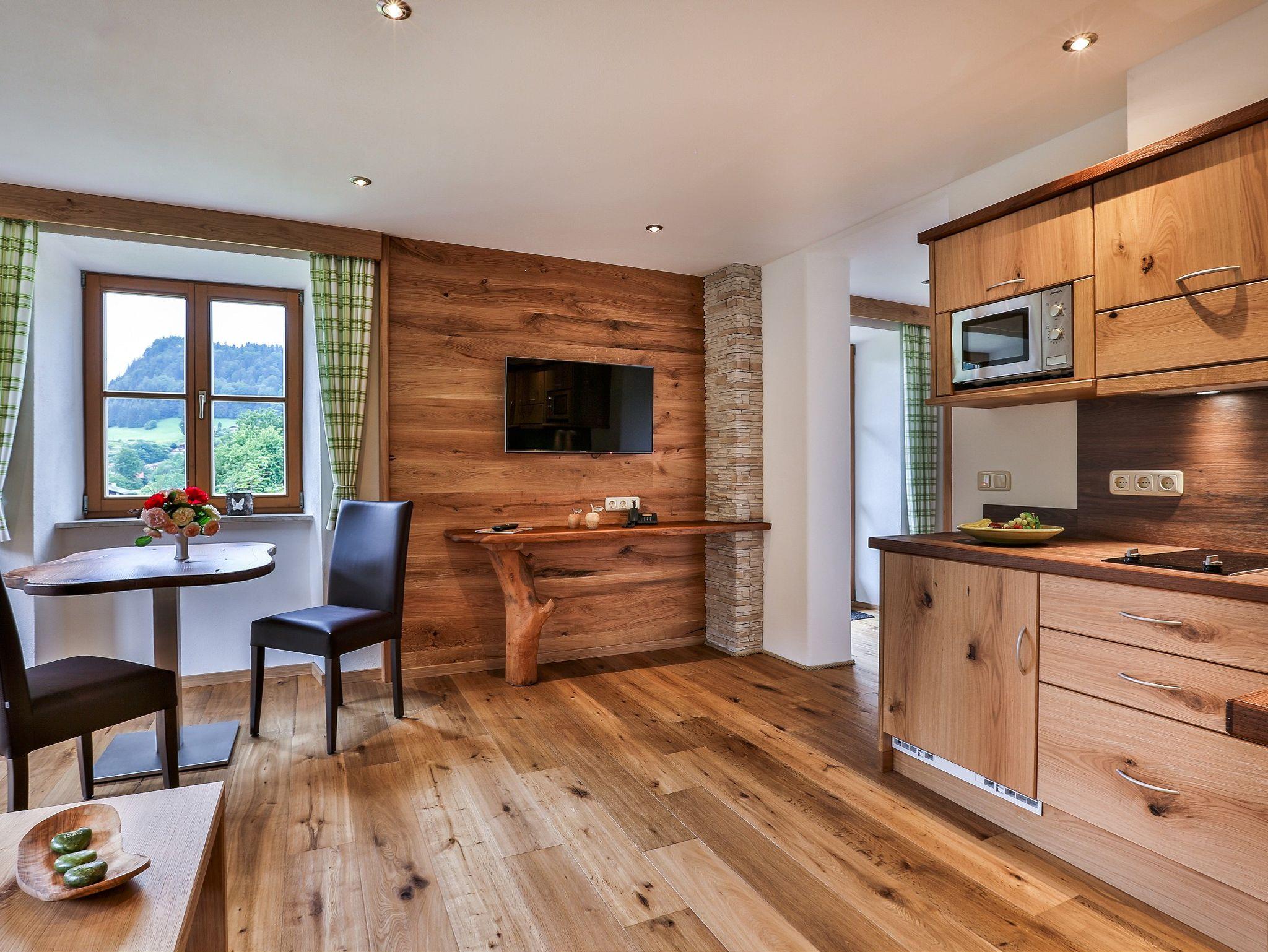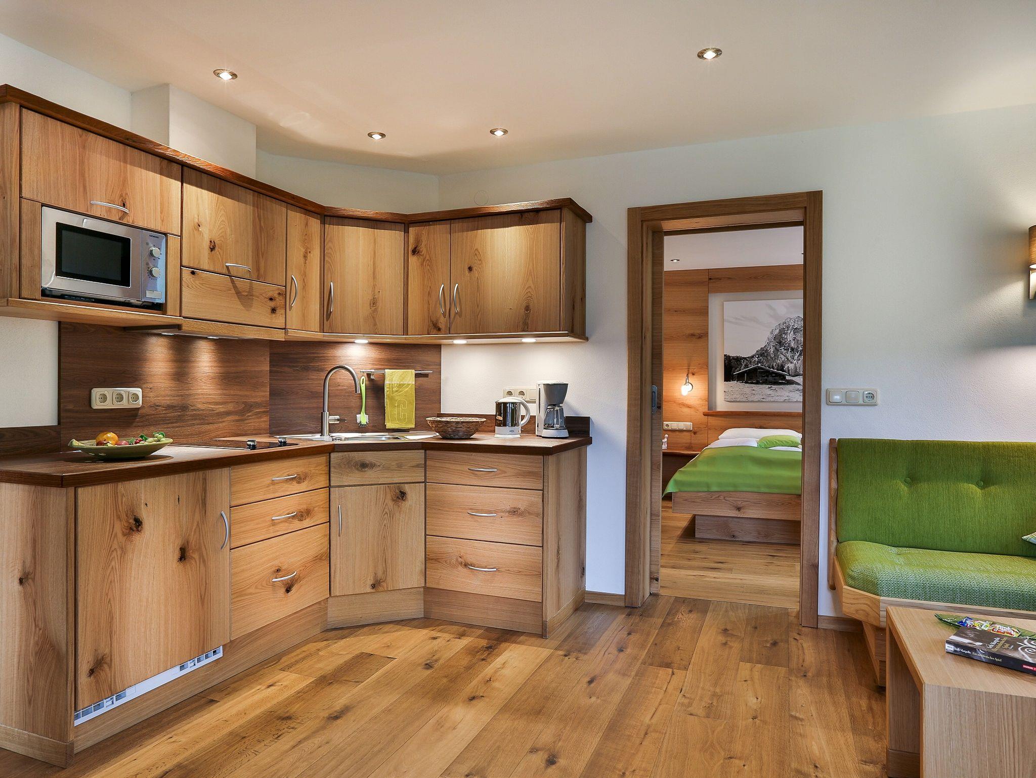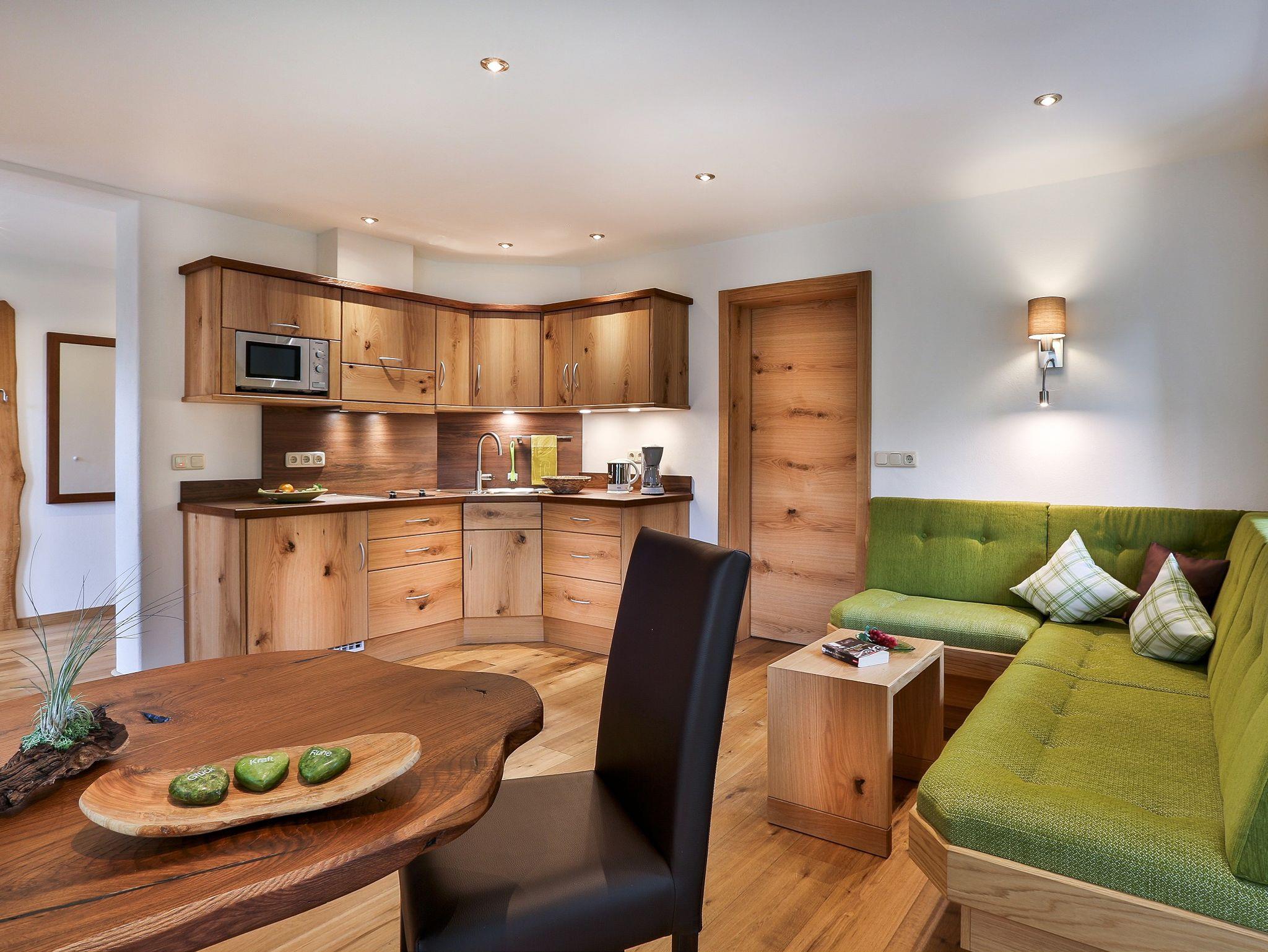 Unsere neue FeWo Halsalm ist eingerichtet mit Naturholzmöbel aus eigener Schreinerei und Echtholz-Fußboden. Schlafzimmer mit begehbarem Schrank, Wohnküche mit Südbalkon und Bad.Gemütlicher Wohnbereich mit Sitzcouch und Tisch und separatem Esstisch und Sitzgelegenheit,Garderobe mit Ganzkörperspiegel, SAT-TV mit Radioprogrammen und Telefon.Gut ausgestattete Küche mit Microwelle, Kühlschrank,2-Platten-Cerankochfeld, Kaffeemaschine und Wasserkocher.Schlafzimmer Bettengröße 180 x 200 cm SAT-TV, Zimmersafe und Kofferablage. Bad mit großzügiger Dusche und WC, Waschtisch mit viel Ablagefläche,Fön, Kosmetikspiegel und Handtuchwärmer. Kostenfreies WLAN im Haus