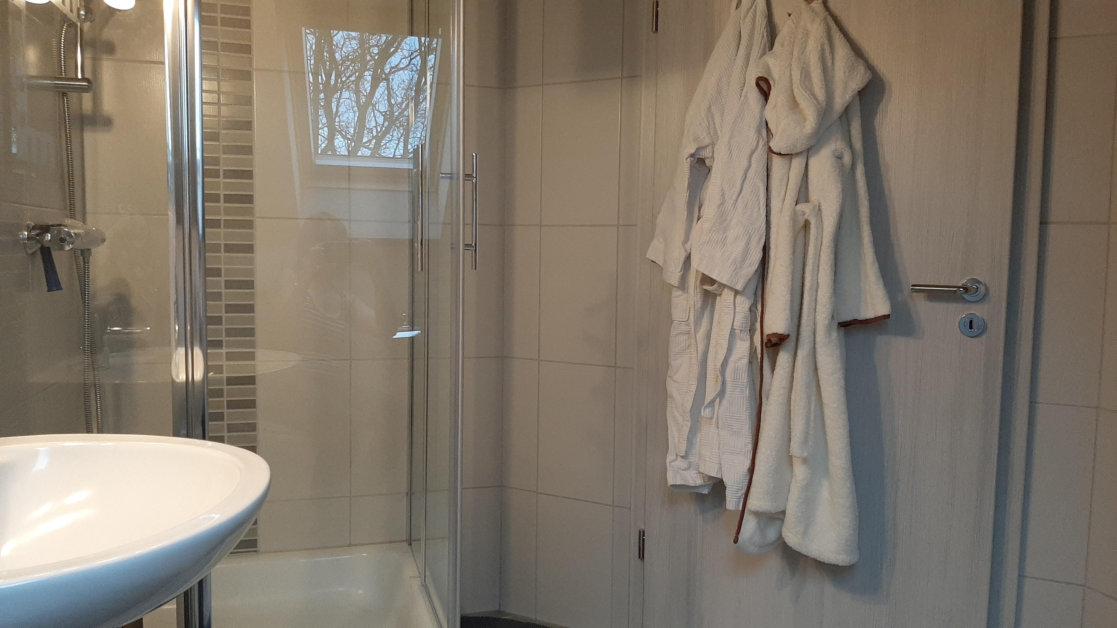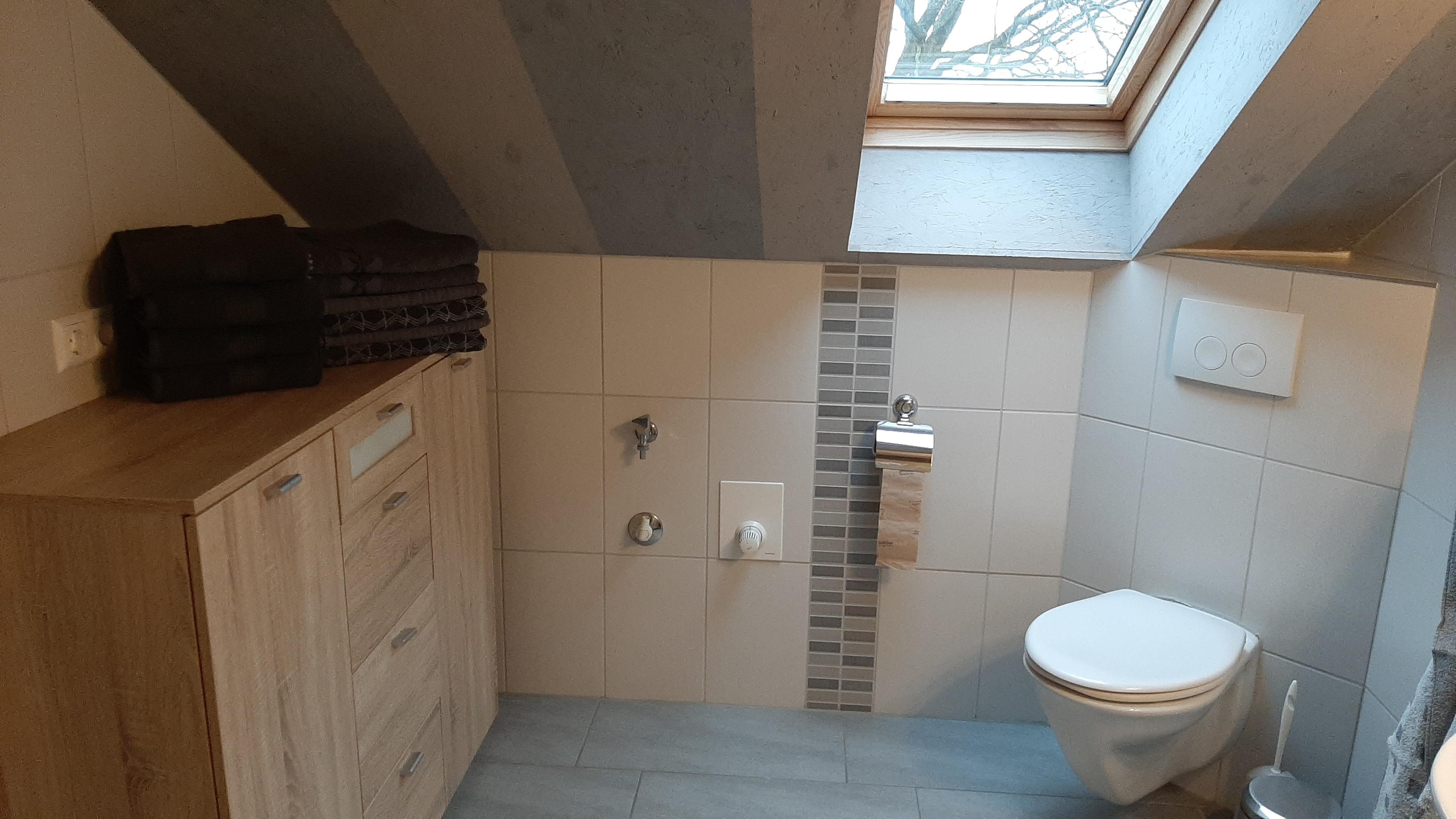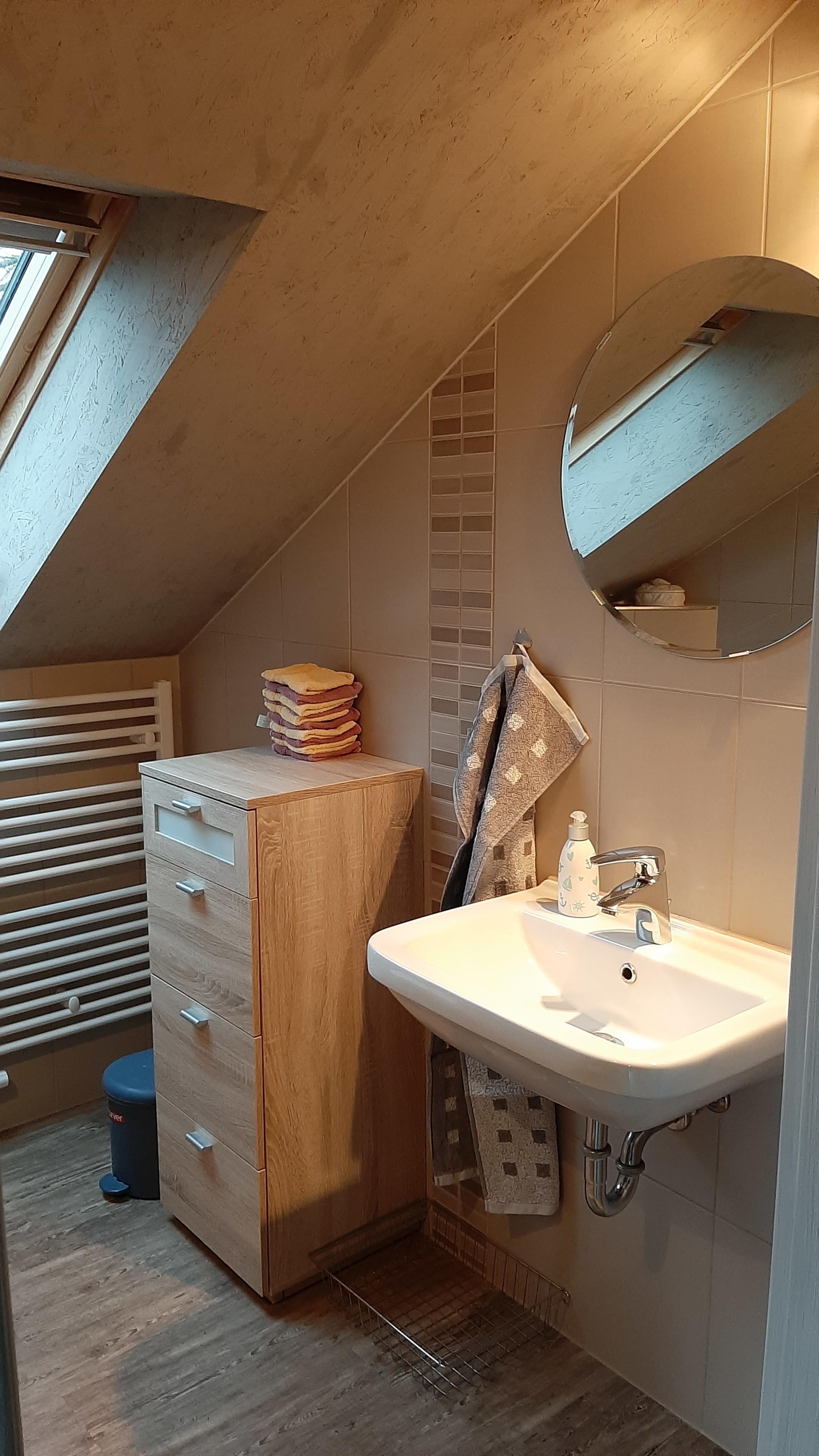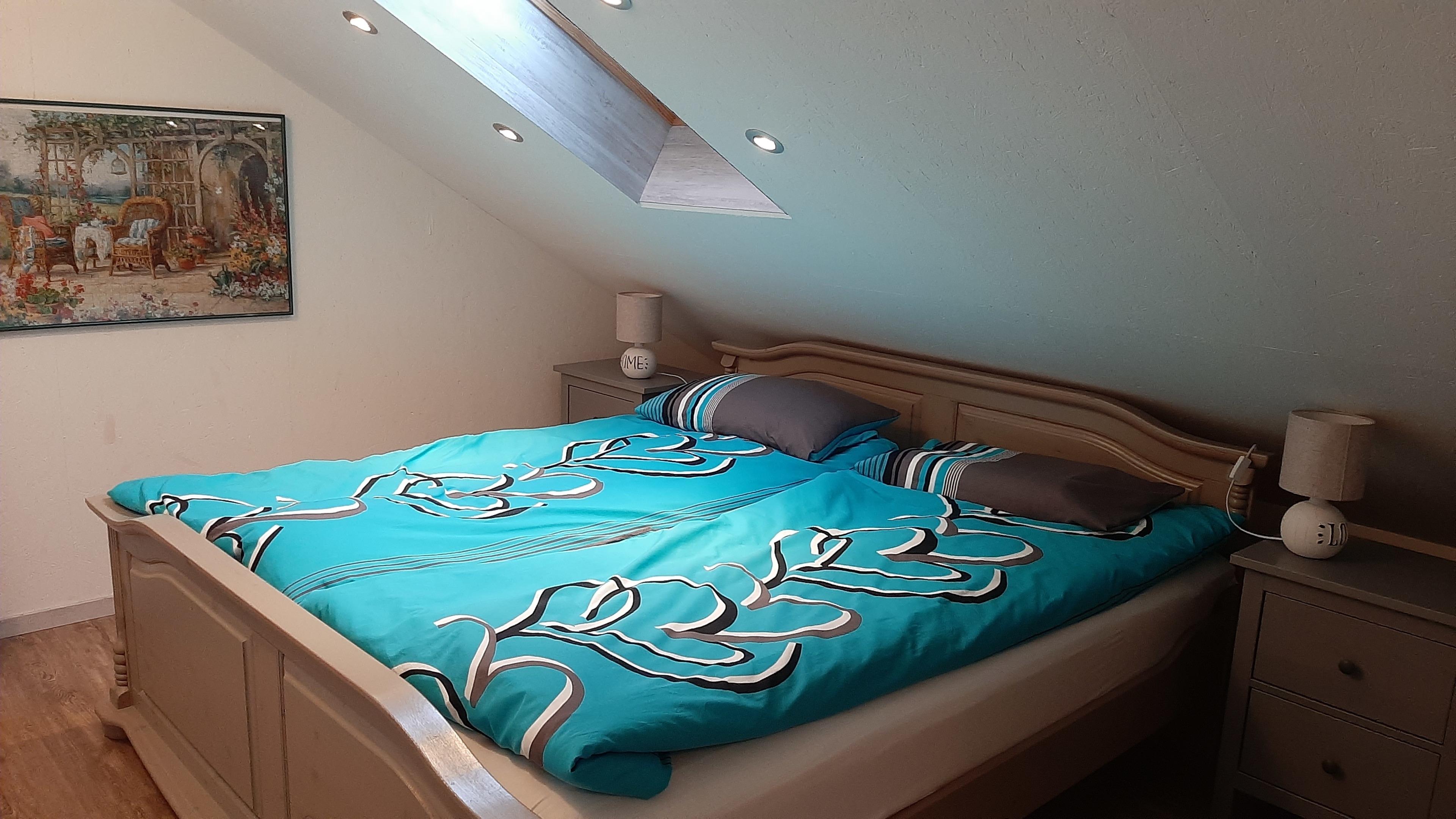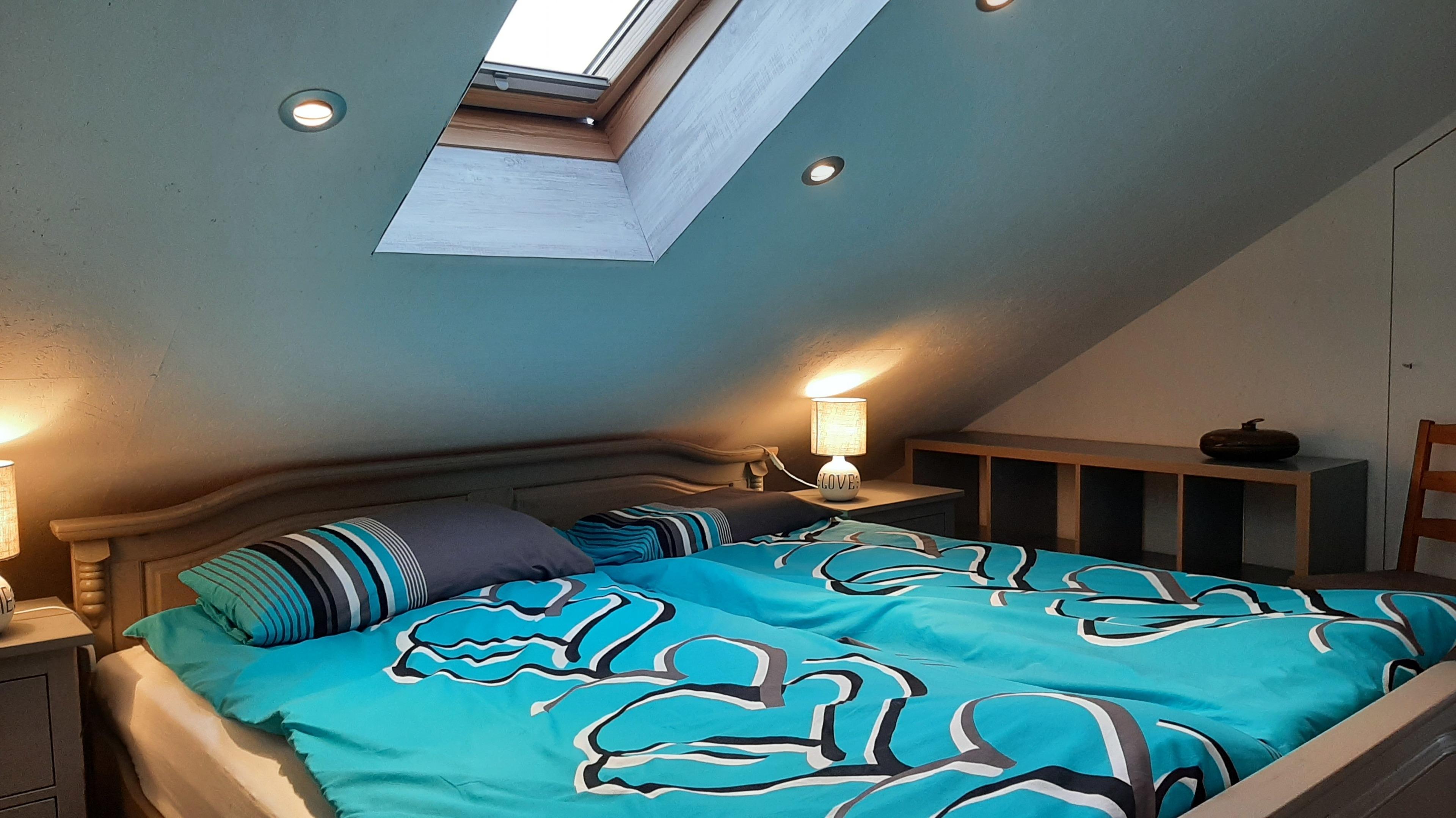 Im Schlafraum 1 und 2 befinden sich je ein Doppelbett, in 1 unterm Dach-Fenster, in 2 trennbar zu Einzelbetten. Alle Betten sind mit Nackenstützkissen und Decken in Übergröße ausgestattet.