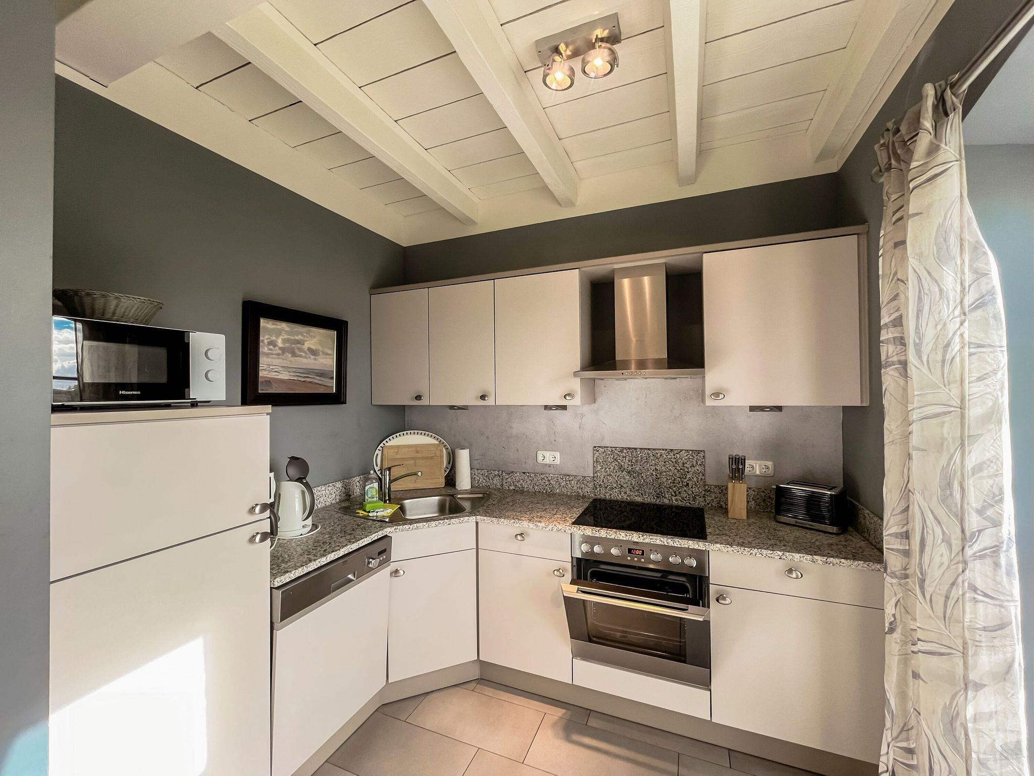 • Voll ausgestattete Komfortküche: Spülmaschine, Backofen, Kaffeemaschine, Wasserkocher und Toaster bieten alles, was Sie für kulinarische Erlebnisse brauchen. Der Essbereich bietet Platz für bis zu 6 Personen.