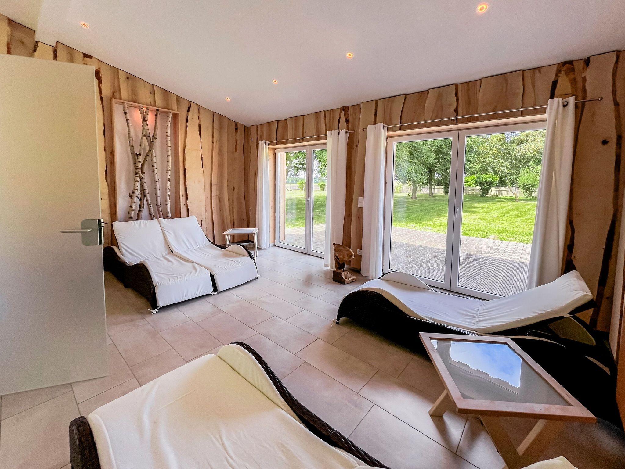 Für zusätzliche Erholung sorgt das neue Saunahaus mit Ruhebereich und Sonnenterrasse, das Ende 2022 fertiggestellt wurde (Nutzung gegen Gebühr). Lassen Sie den Alltag hinter sich und genießen Sie Wellness in exklusiver Umgebung.