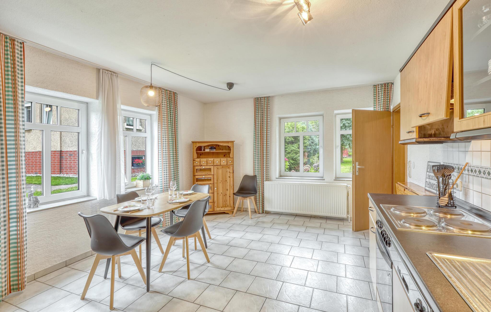 Det lyse interiør byder på komfortable siddepladser i stuen. Brug pejsen til at skabe en varm atmosfære på kølige dage og sæt jer til rette med en god bog eller foran fjernsynet. Tilbered jeres måltider i det rummelige køkken med moderne apparater og nyd dem ved spisebordet med udsigt over haven.