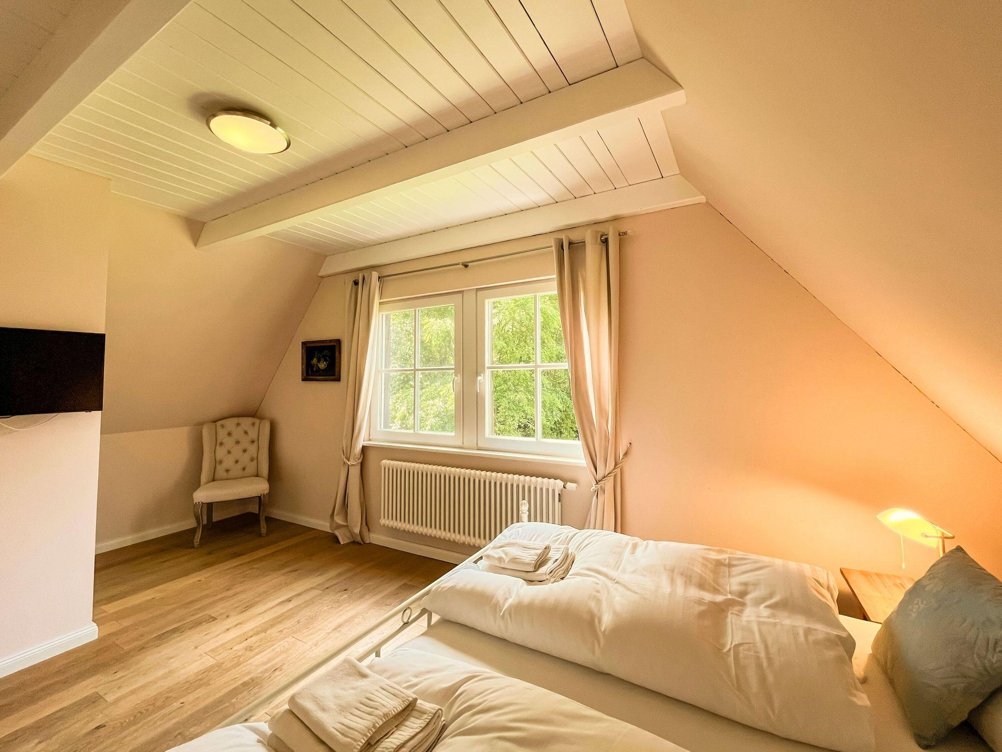 • Zwei Schlafzimmer mit komfortablen Doppelbetten, eines davon ausgestattet mit TV. Der Zugang zur Schlafgalerie im Dachgeschoss erfolgt über eine innenliegende Treppe innerhalb eines der Schlafzimmer.
