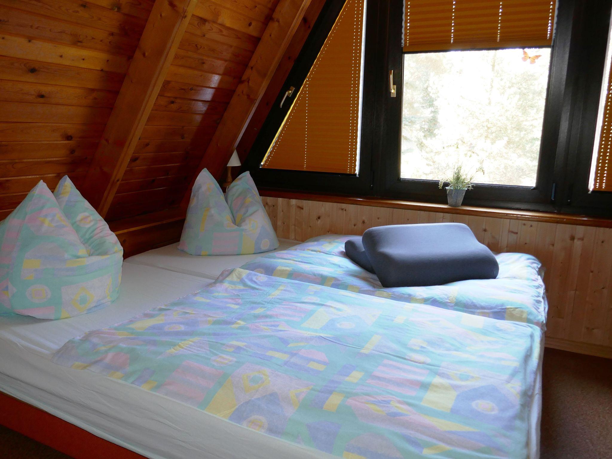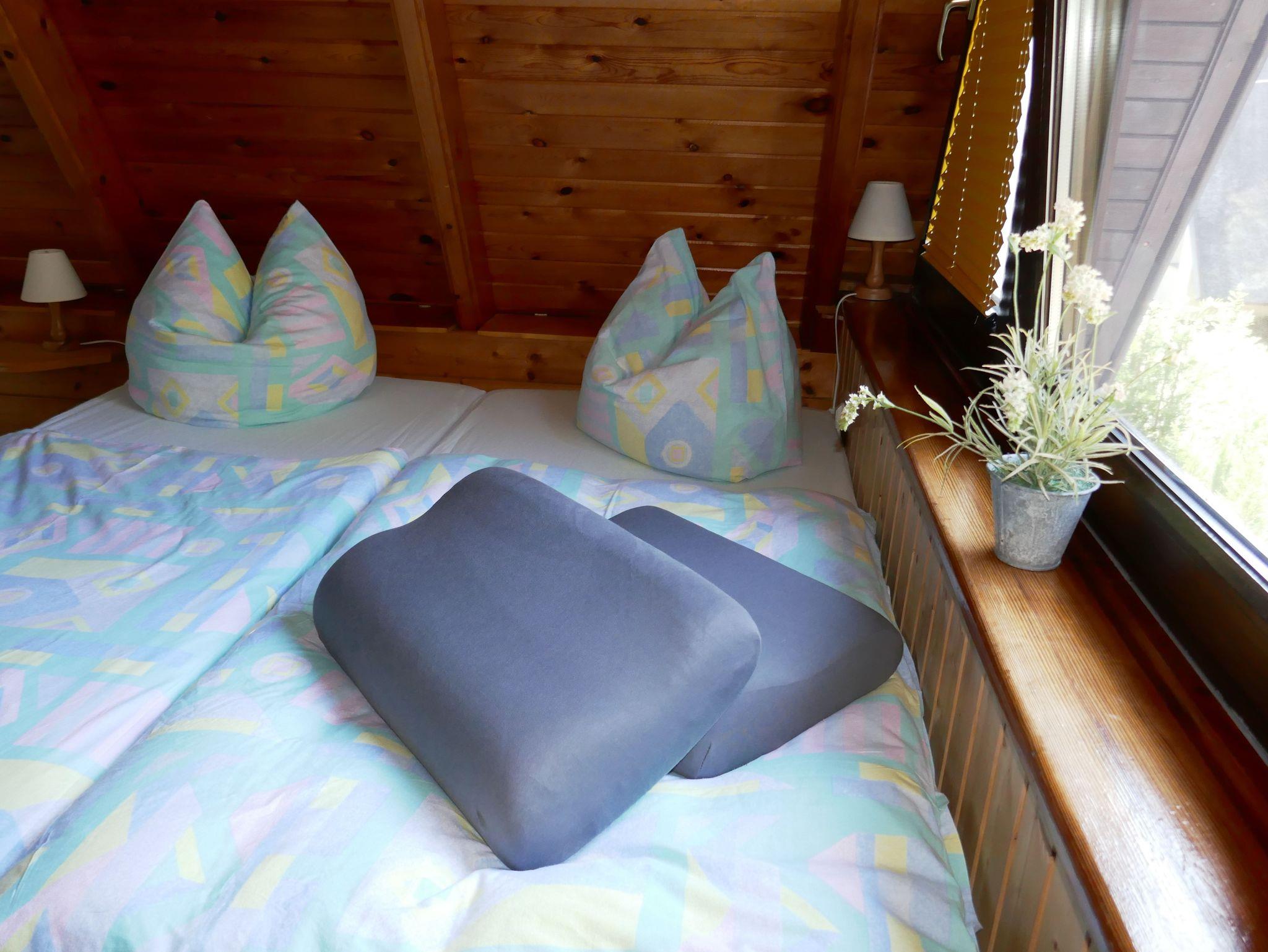 2 Schlafräume befinden sich im Obergeschoß, einmal mit zwei zusammenstehenden Betten und einmal mit zwei getrennt stehenden Betten (Größe 90x200 und 2 mit 75x180).