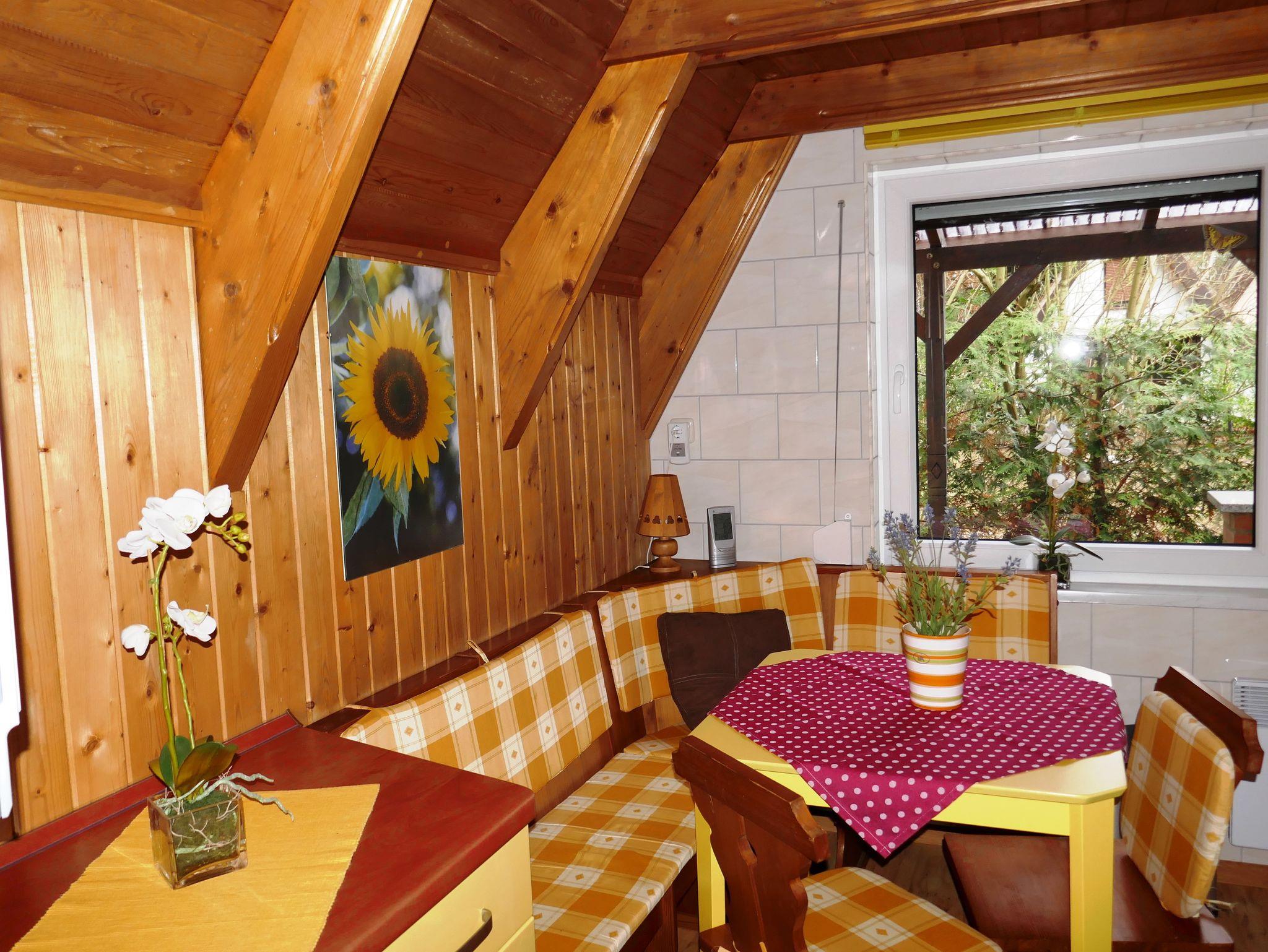 Die gemütlich eingerichtete Finnhütte verfügt im Erdgeschoss über eine offene Küche. Sat-TV, DVD-Player und Radio sorgen nicht nur bei schlechtem Wetter für Abwechslung. W-Lan steht Ihnen kostenfrei zur Verfügung.