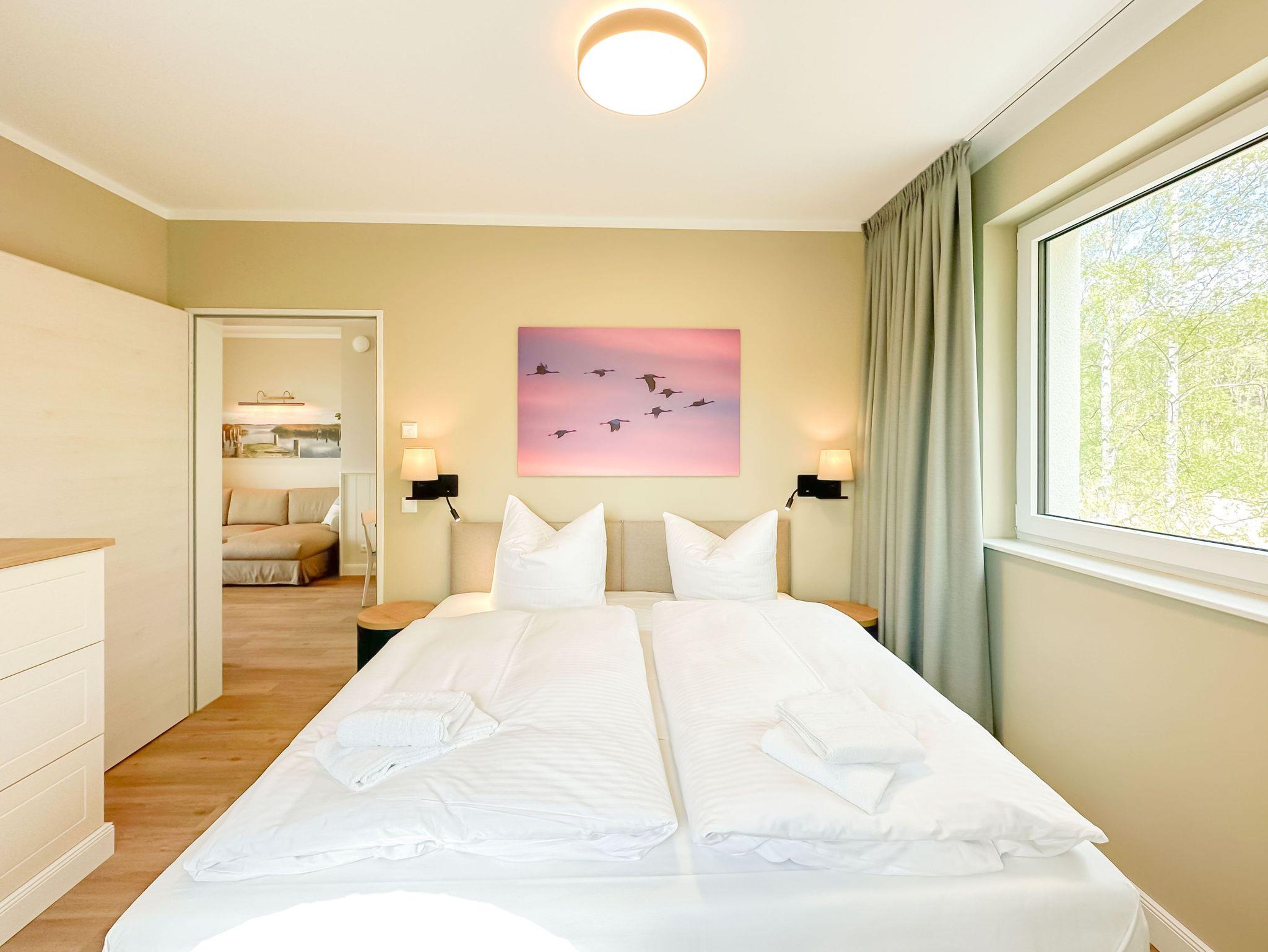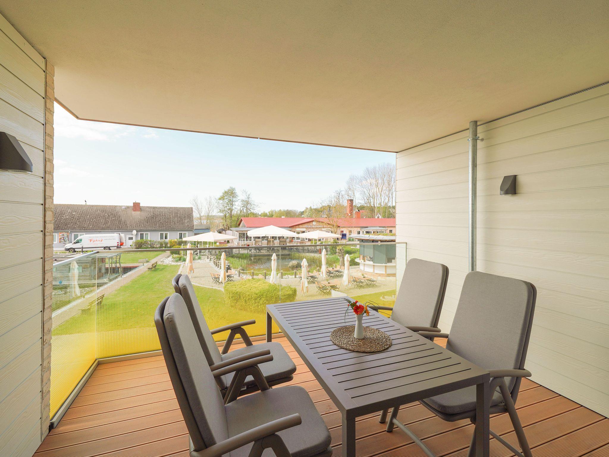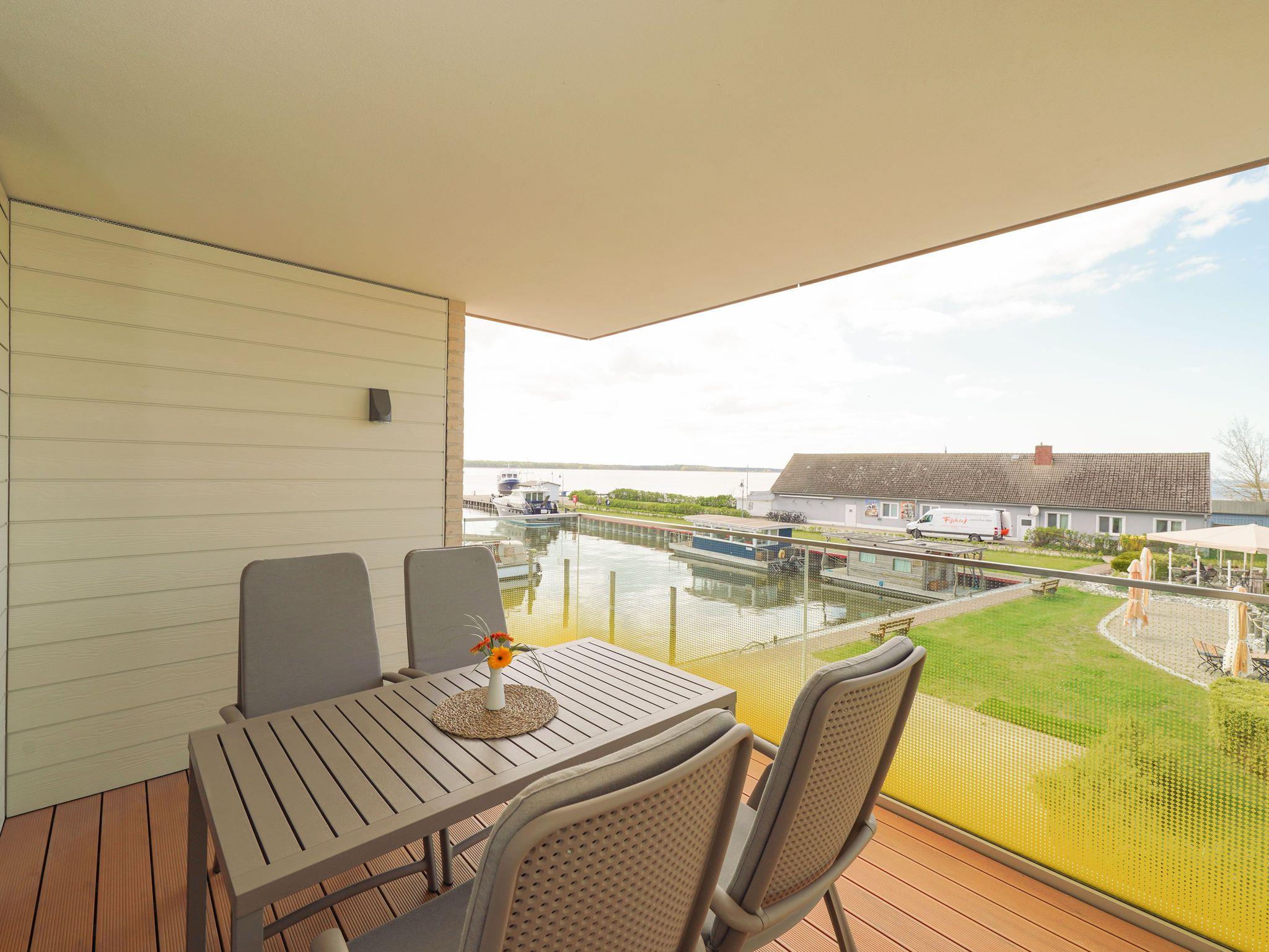 75m² Suite im OG für bis zu 4 Personen. Schlafzimmer mit Doppel-Boxspringbett (180x200). 15 m² Balkon mit einmaligem Blick auf Wasser und Hafen. Parkplatz und WLAN sind inklusive.Nichtraucher-Suite. Dachsauna mit Terrasse, Fitnessraumund Frühstück sind vor Ort zu buchbar. Wäschepaket und Endreinigung einmalig 139,- €.