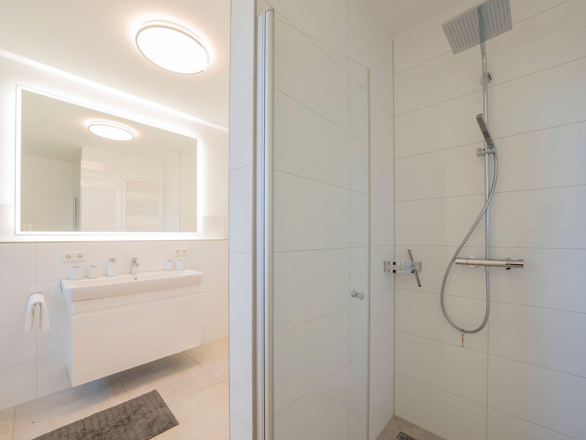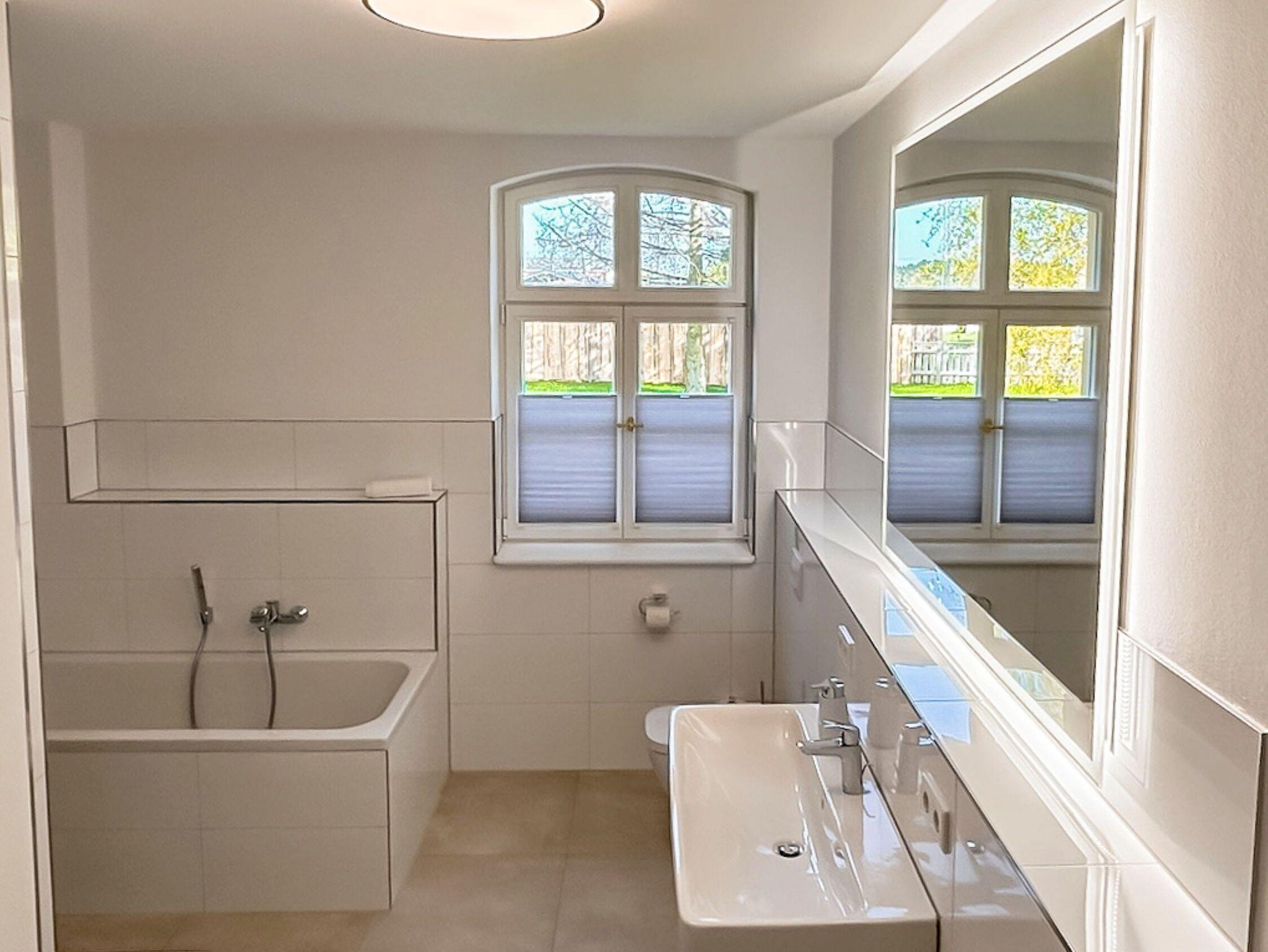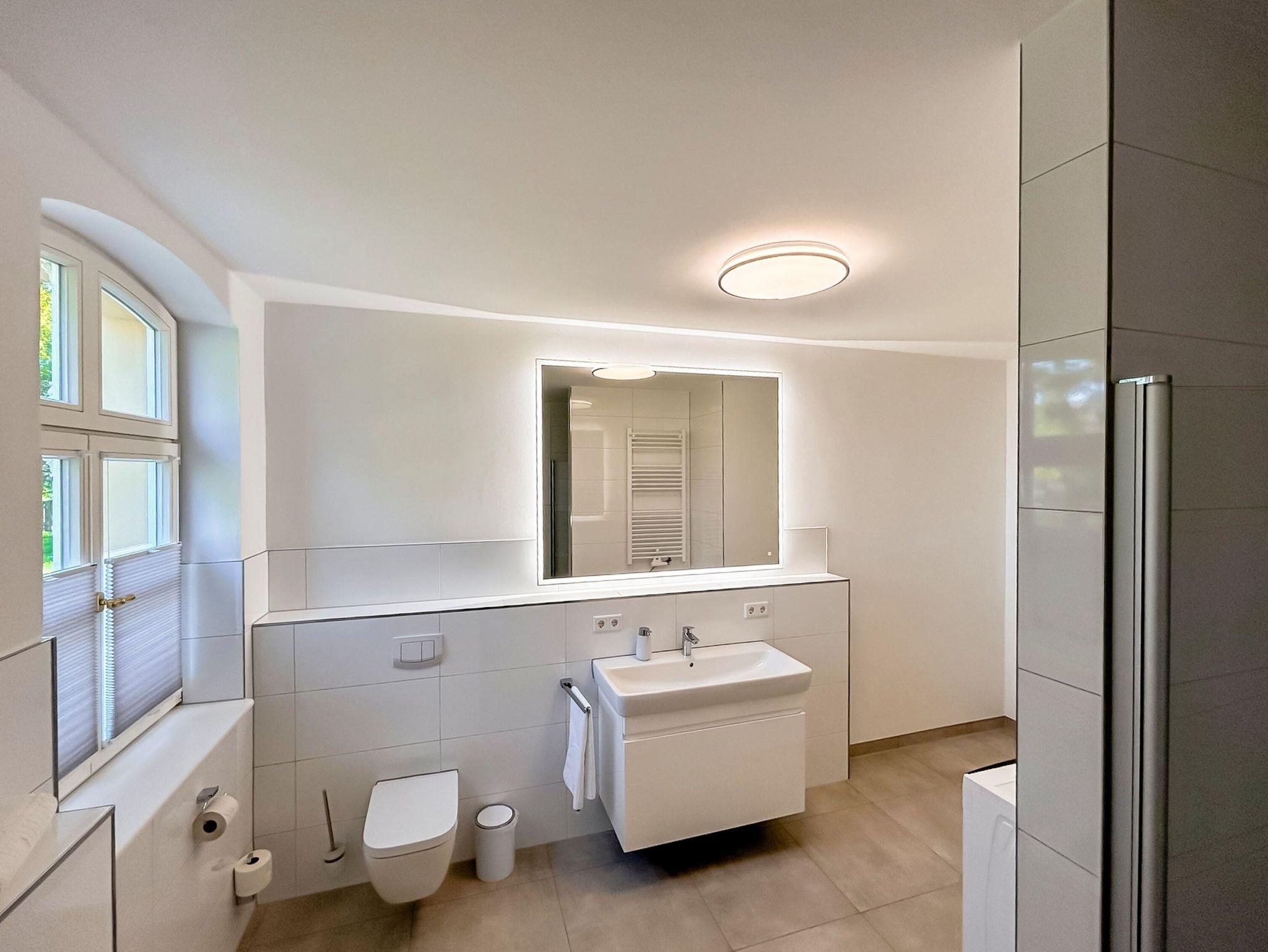 • Modernes Badezimmer: Mit Badewanne, Dusche, Waschtisch und WC sowie zusätzlichem Gäste-WC.