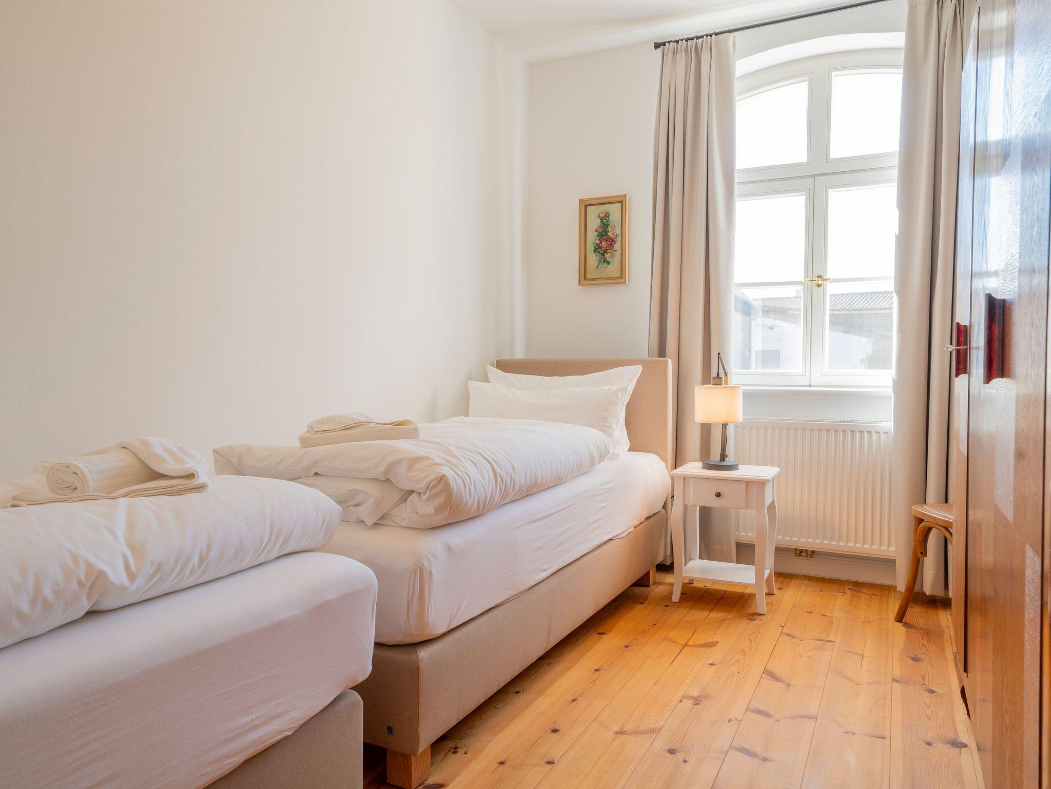 • Schlafzimmer: 2 Zimmer mit Doppelbetten, 1 Zimmer mit 2 Einzelbetten für erholsame Nächte.