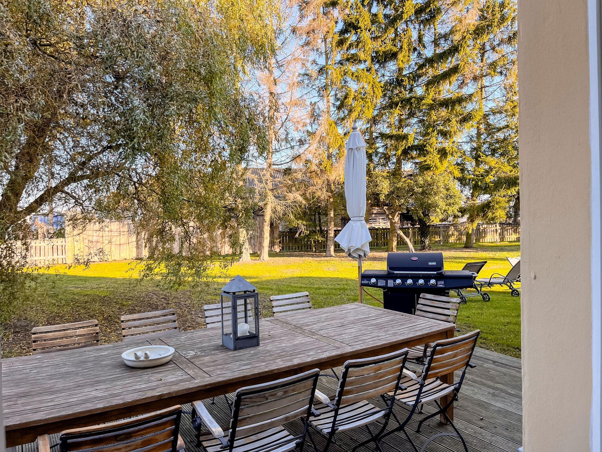 • Terrasse: Mit Gartenmöbeln, Sonnenschirm und Grill für entspannte Stunden im Freien.