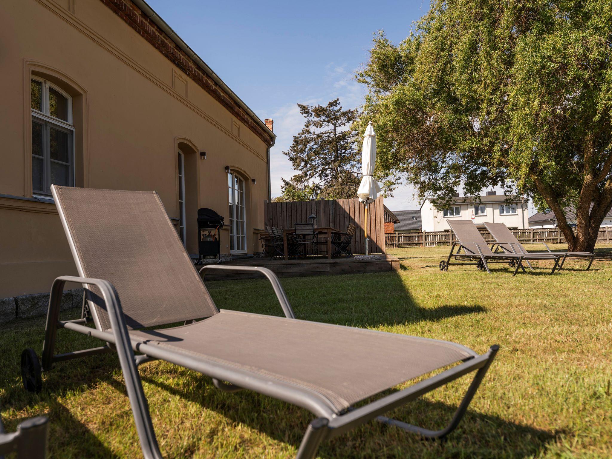 • Weitläufiger Garten: Sonnenliegen laden zum Relaxen ein.