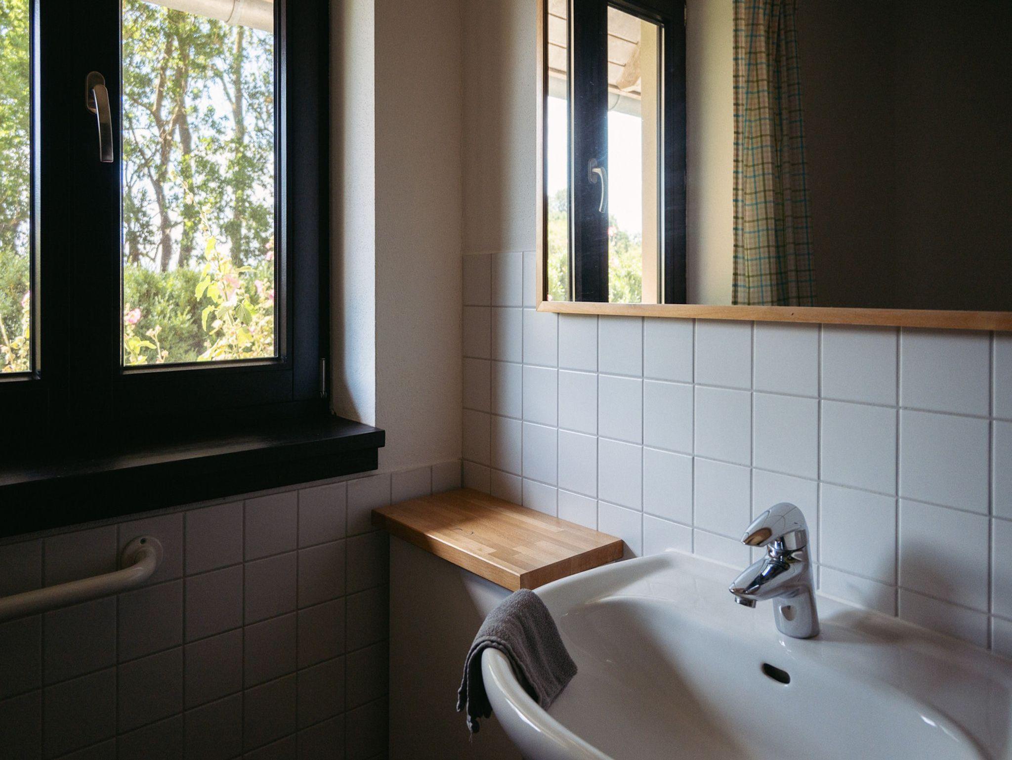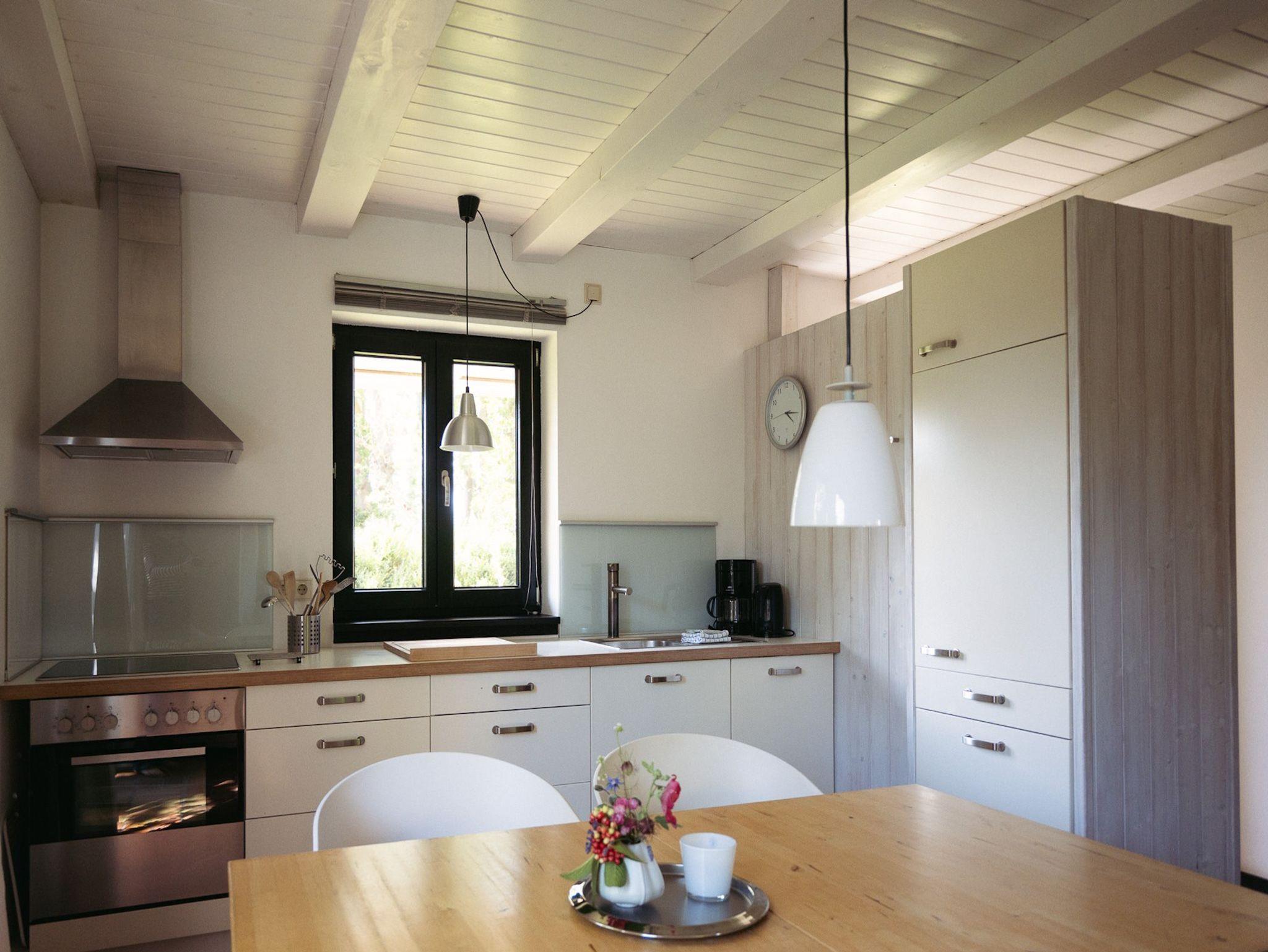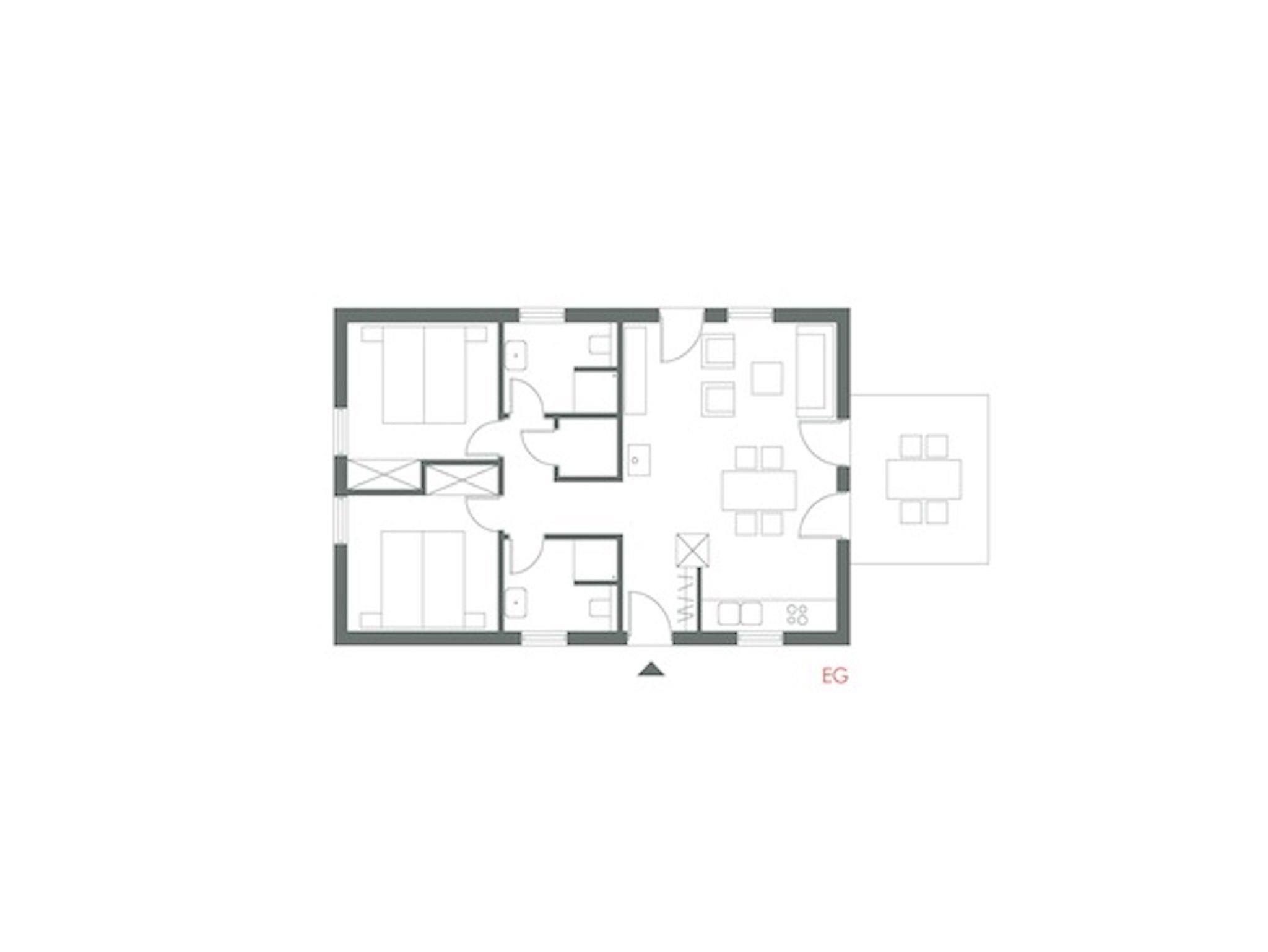 Ebenerdig, 2 Bäder, 2 Schlafzimmer mit Doppelbett (180x200), Wohn-Essraum mit Kaminofen, gut ausgestattete Küchenzeile, Terrasse mit Gartenmöbeln, Sonnenliege und Sonnenschirm.