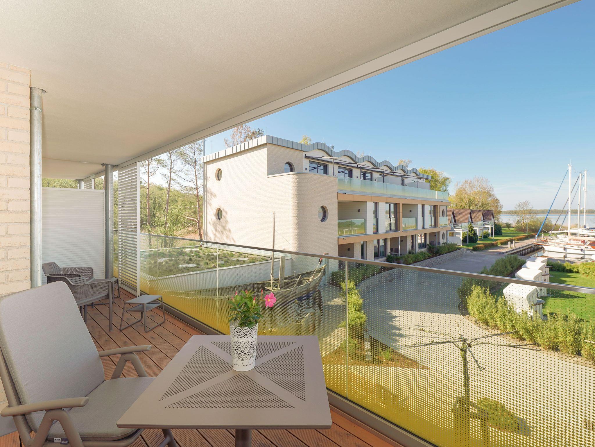 70m² Suite im OG für 2 Personen. Schlafzimmer mit Doppel-Boxspringbett (180x200). 20 m² Balkon mit einmaligem Blick auf Wasser und Hafen. Nichtraucher-Suite. Parkplatzund WLAN sind inklusive. Turmsauna mit Dachterrasse, Fitnessraum und Frühstück sind vor Ort zu buchbar. Wäschepaket und Endreinigung einmalig 139,- €.