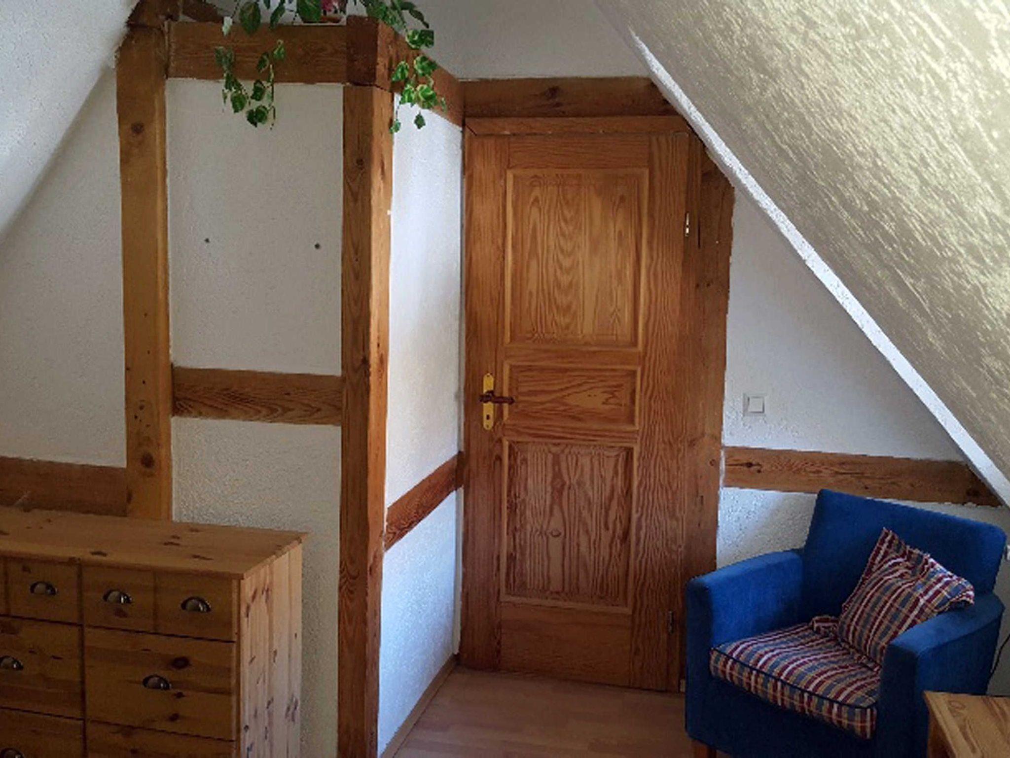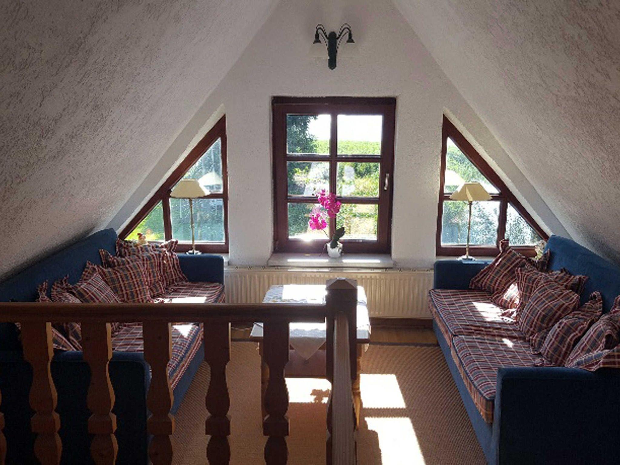 Im Obergeschoss befinden sich zwei Schlafzimmer. Ein großes Schlafzimmer mit Doppelbett und ein kleineres Schlafzimmer mit zwei Einzelbetten. Bis zu zwei Aufbettungen sind möglich. Ein Kinderbett wird auf Anfrage bereit gestellt. Die Aufbettung kann auch separat aufgestellt werden.