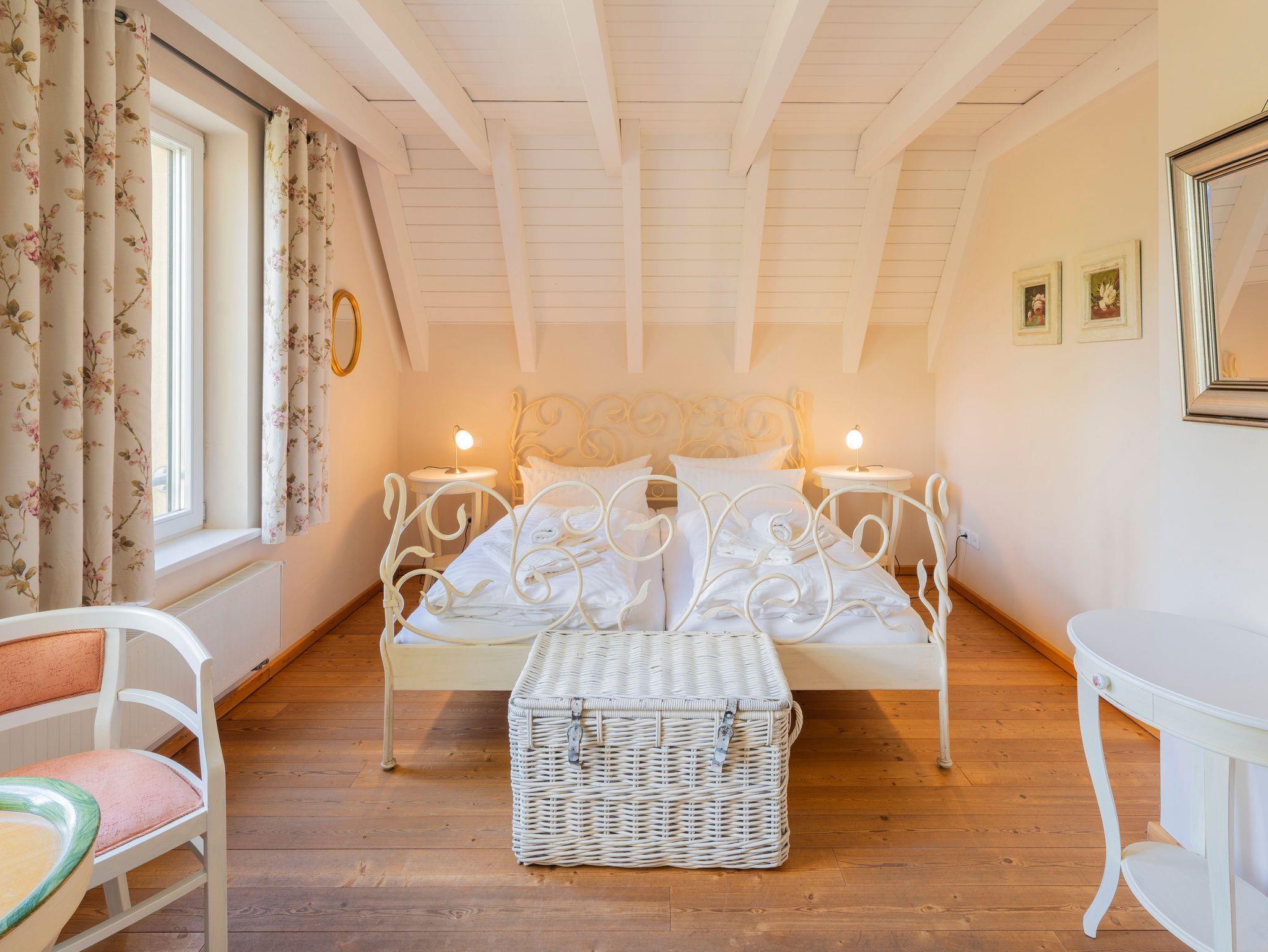 • Spitzboden: Über ein Schlafzimmer über eine Treppe erreichbar (nicht barrierefrei), mit Doppelbett und Schlafcouch ? ideal für zusätzliche Gäste