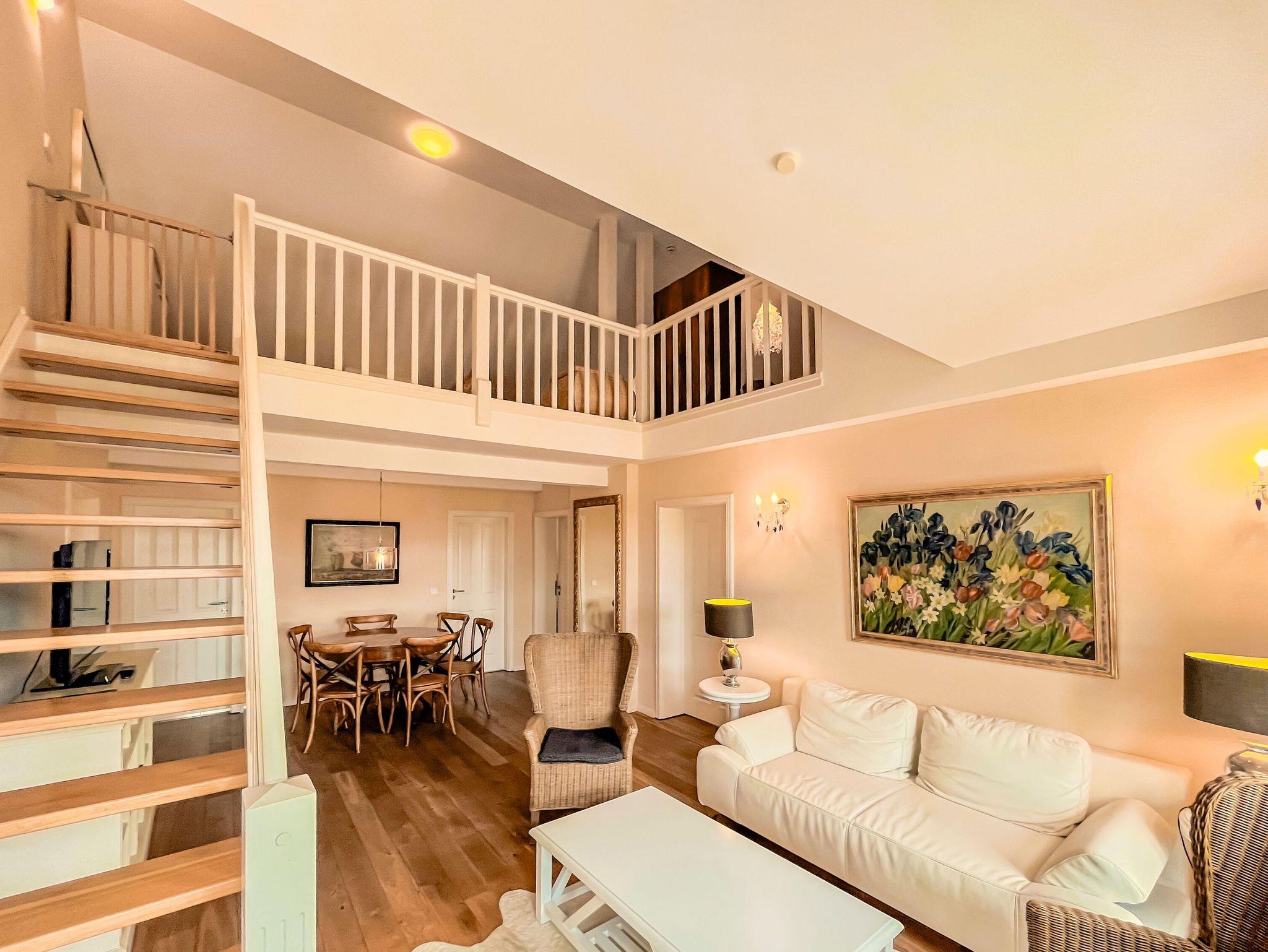• Offene Schlafgalerie mit einem weiteren Doppelbett, erreichbar über eine Treppe innerhalb der Wohnung