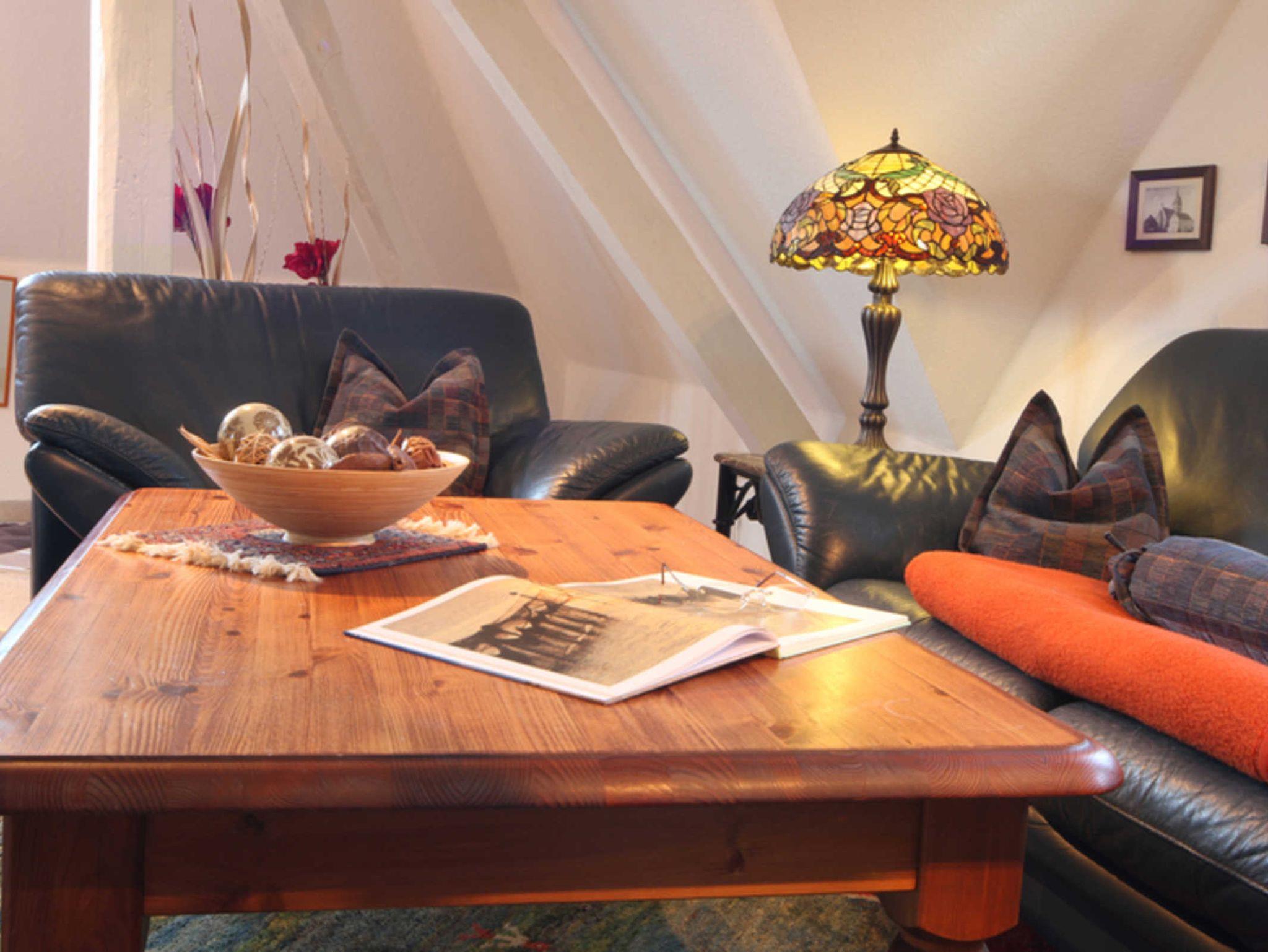 Die komfortable Nichtraucher-Fewo befindet sich im Hauptkomplex der Ferienwohnanlage. Durch einen separaten Eingang gelangen Sie in den Gemeinschaftsflur der zu vier Wohnungen führt. Die Fewo liegt im DG mit herrlichem, weitreichendem Ausblick über den Lieper Winkel und hat einen gemütlichen, großzügigen Wohnbereich mit Couchgarnitur, Stereoanlage, DVD-Player, SAT-TV und einer gemütlichen Leseecke, sowie einen vollständigen Küchenbereich mit Ceranfeld, Backofen, Geschirrspüler, Kühl- und Gefrierschrank, Mikrowelle, Kaffeemaschine, Toaster, Wasserkocher und Geschirr. Das geräumige Bad ist ausgestattet mit einer Dusche, Badewanne, WC und Haarfön. Das Schlafzimmer ist mit zwei getrennt stehende Betten ausgestattet