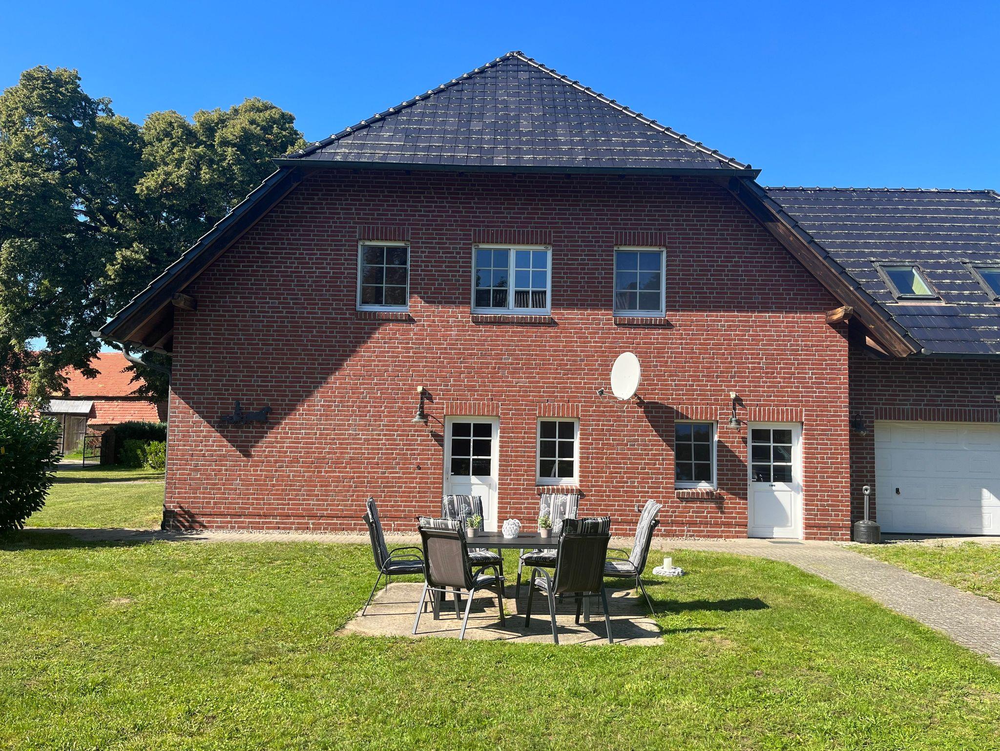 Vor dem Haus befindet sich eine Grünfläche mit Gartenmöbeln für jede Wohnung und Grillplatz. Haustiere
