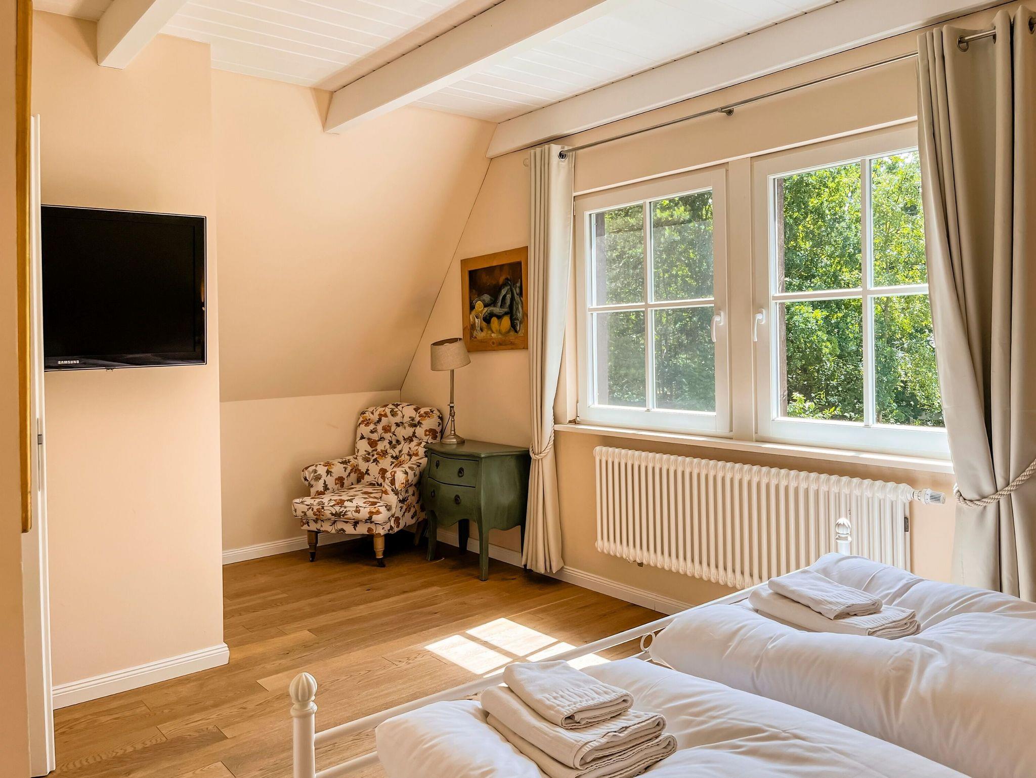 • Zwei Schlafzimmer mit komfortablen Doppelbetten, eines davon ausgestattet mit TV. Der Zugang zur Schlafgalerie im Dachgeschoss erfolgt über eine innenliegende Treppe innerhalb eines der Schlafzimmer.