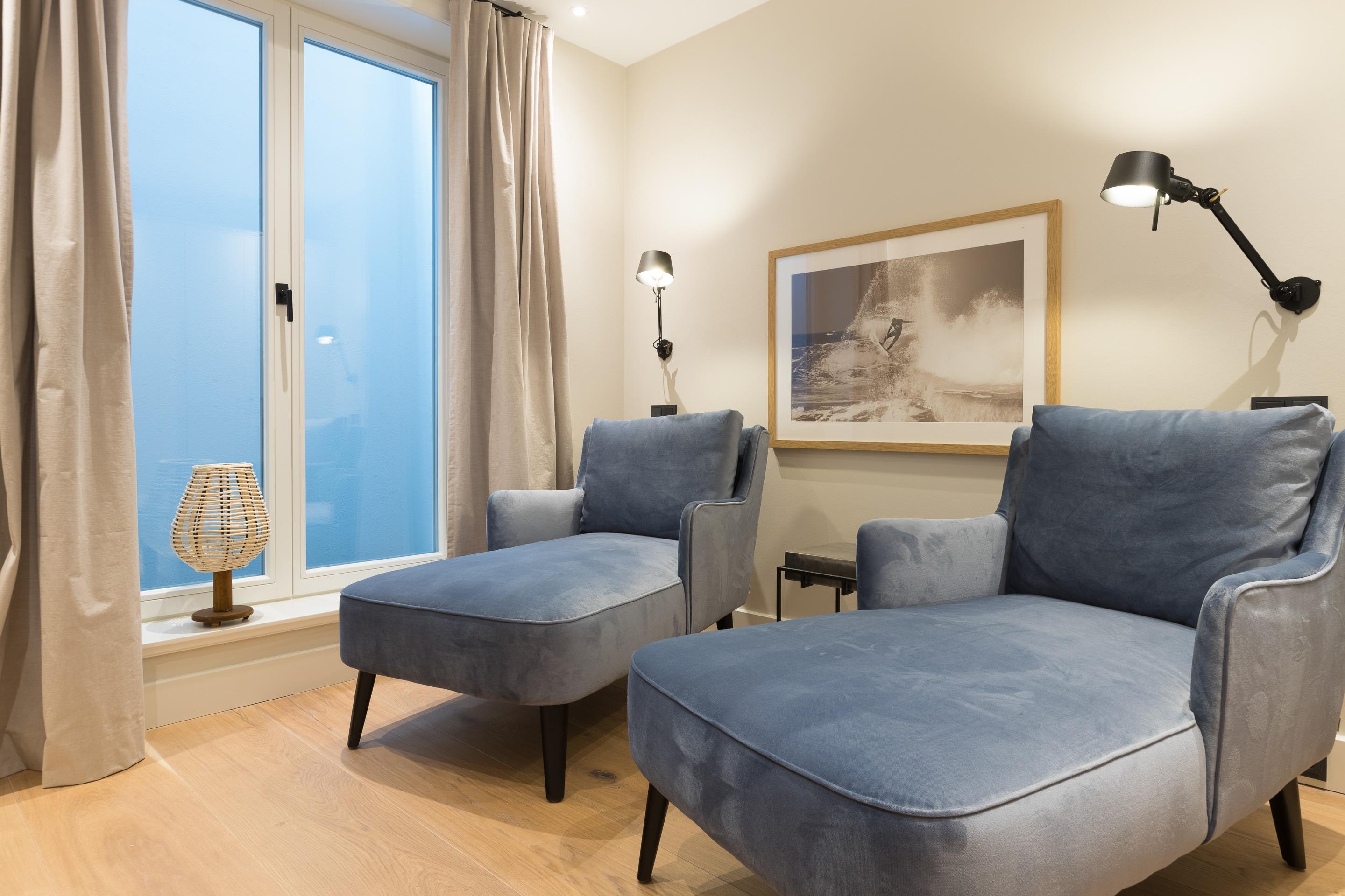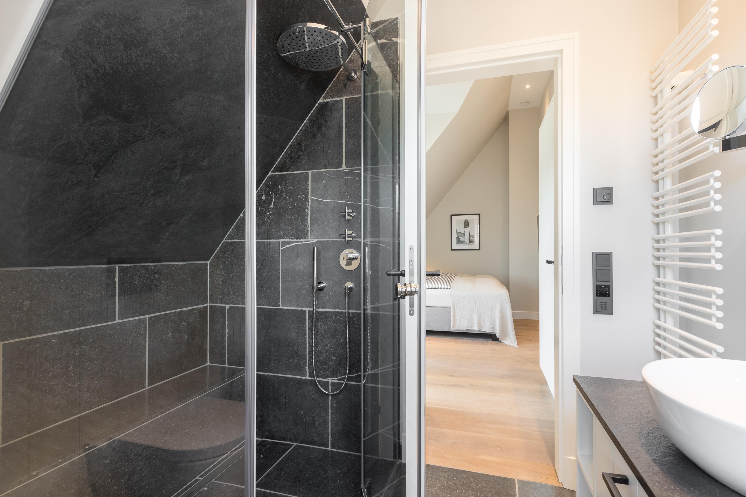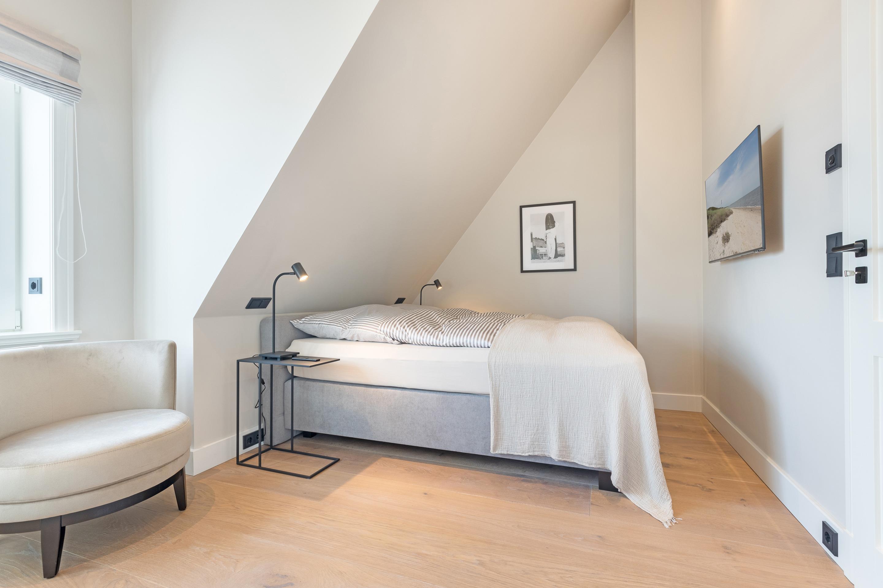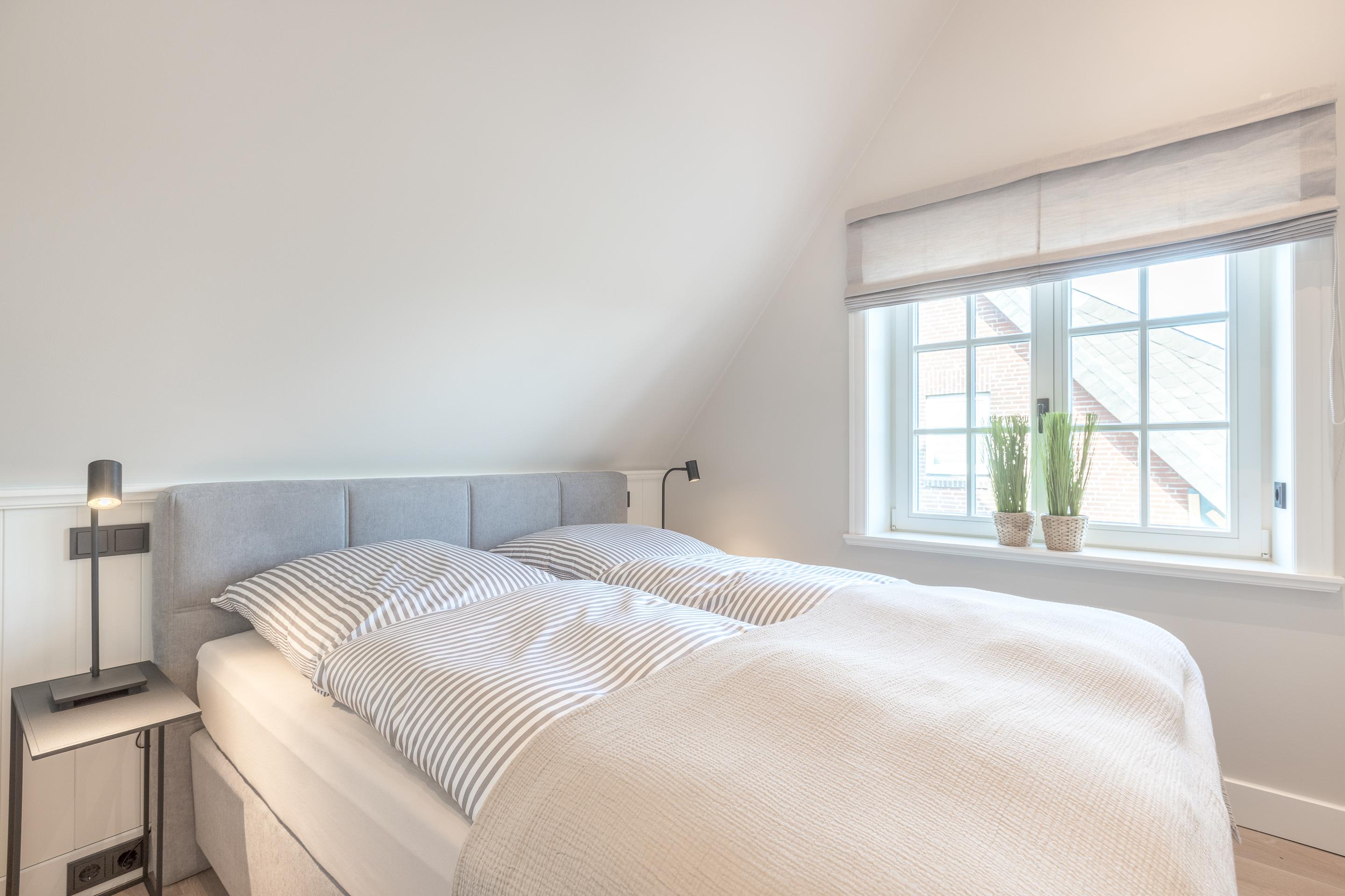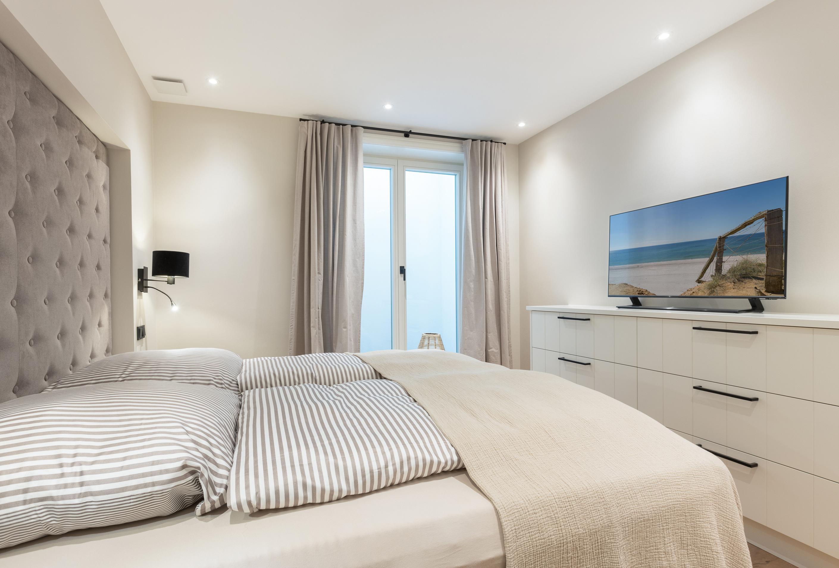 Die frische Seeluft und die langen Sylter Nächte machen müde. Wo lässt es sich besser erholen als im Master Bedroom mit Bad en Suite, komfortablen Boxspringbett (1,80mx2,00m), Flat TV und luxuriösen Tischlereinbauten? Und wenn Sie perfekt erholt aufwachen erblicken Sie als erstes das Weltnaturerbe Wattenmeer.