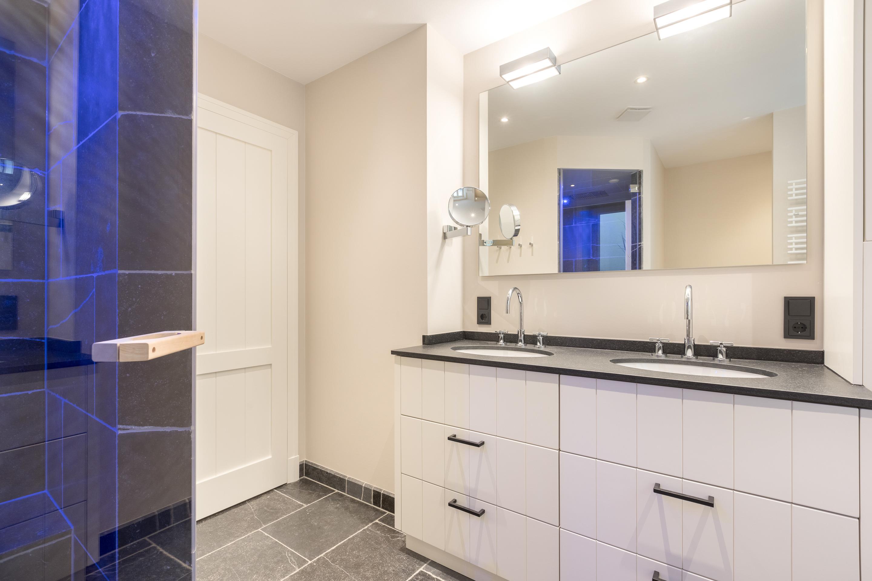 Ein zweites Badezimmer mit großer Dusche, Raindance-Duschkopf, beheiztem Handtuchhalter, WC und Doppelwaschtisch befindet sich ebenfalls auf dieser Etage.