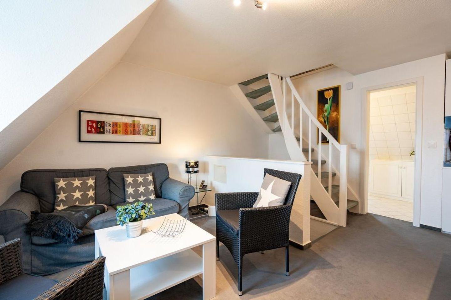 Traumhafte 2-Zimmer-Ferienwohnung unter Reet mit 43 m² auf zwei Ebenen (1.OG, DG) für bis zu 2 Personen.