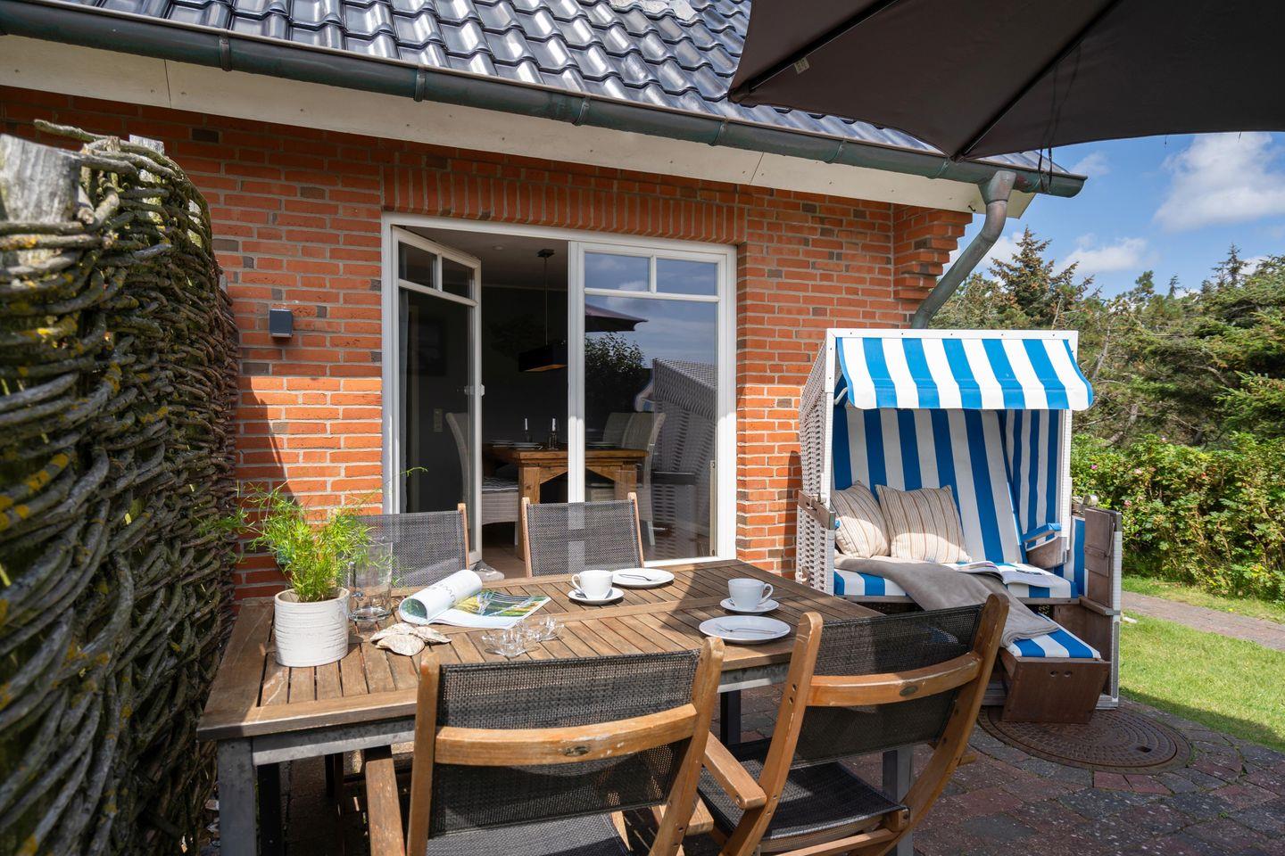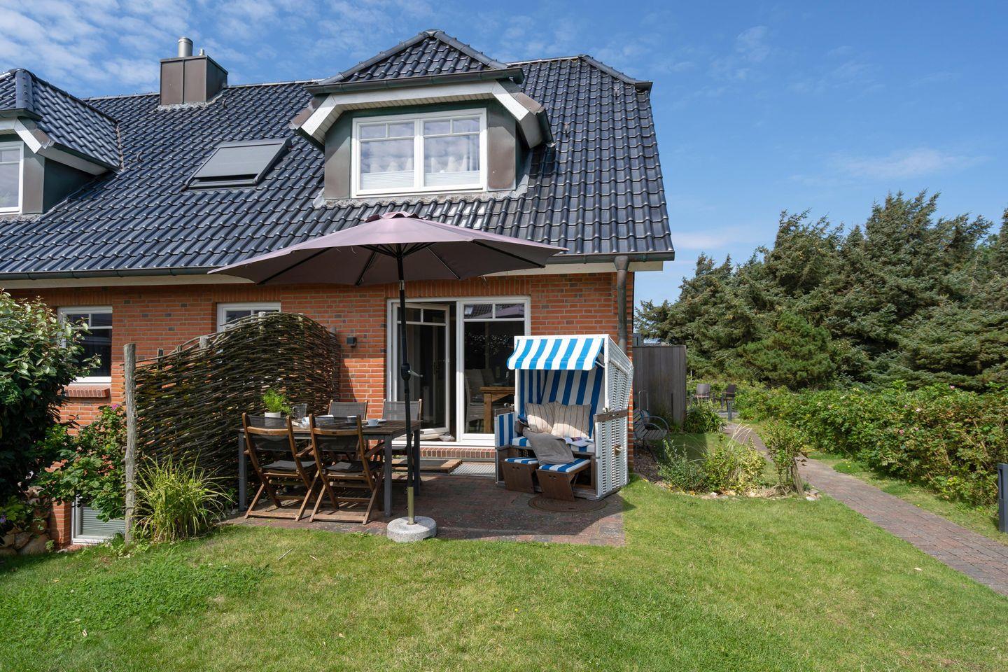 Schönes ca. 95 m² großes Ferienhaus in ruhiger, zentraler Strandlage für bis zu 4 Personen in Rantum mit schönem Garten und zugehörigem PKW-Stellplatz. Inklusive WLAN und Strandkorb (in der Saison).