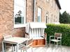 - Die gemütliche Holzterrasse mit Tisch und Stühlen sowie Zugang zur Rasenfläche macht den Aufenthalt im Freien komfortabel.
