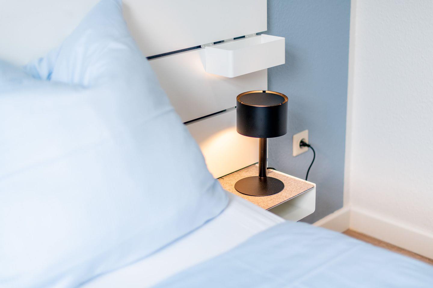 - Das Schlafzimmer bietet ein Doppelbett (160 x 200 cm).
