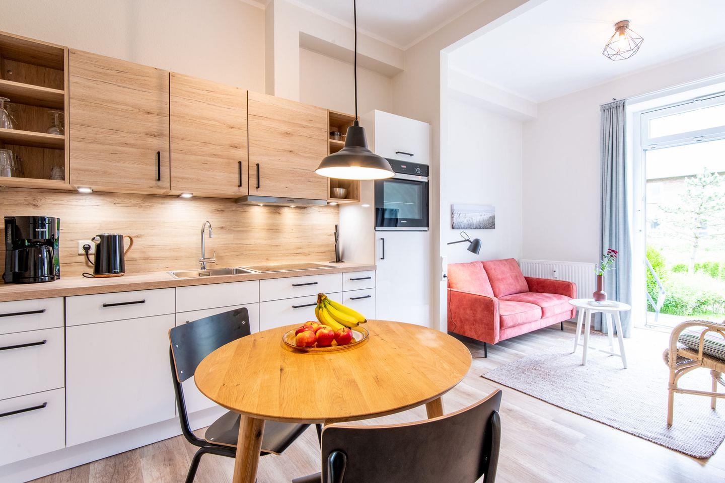 - Der Essbereich mit Küchenzeile befindet sich im Eingangsbereich der Wohnung. Von hier aus gelangen