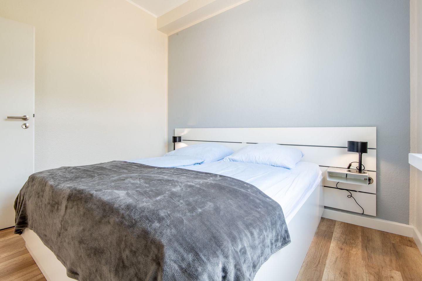 - Das Schlafzimmer bietet ein Doppelbett (180 x 200 cm).