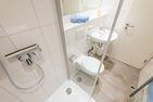 Die Wohnung verfügt über ein Badezimmer, welches mit einer bodengleichen Dusche, einem WC, einem Waschbecken und einer Handtuchheizung ausgestattet ist.