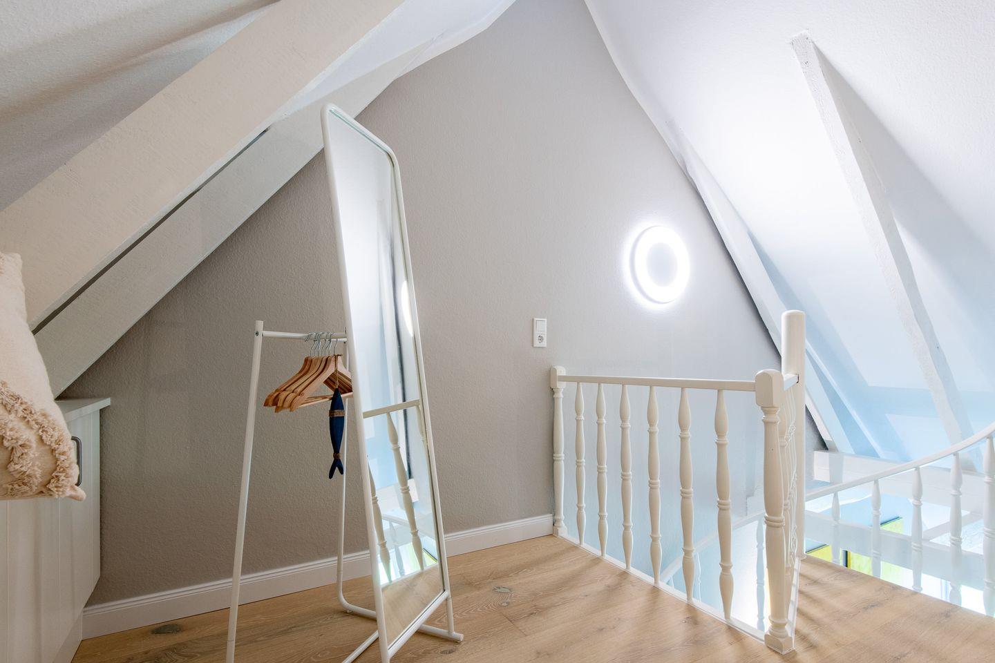 Das Ferienobjekt verfügt über ein Schlafzimmer im ersten Obergeschoss mit einem ausziehbaren Einzelbett, das sich besonders für Kinder oder Freunde eignet. Ein weiteres Highlight ist die Galerie, auf der ein Doppelbett (180x200 cm) zum Träumen und Erholen einlädt. Die ruhige Lage und die geschmackvolle Einrichtung sorgen für erholsame Nächte und eine angenehme Atmosphäre.